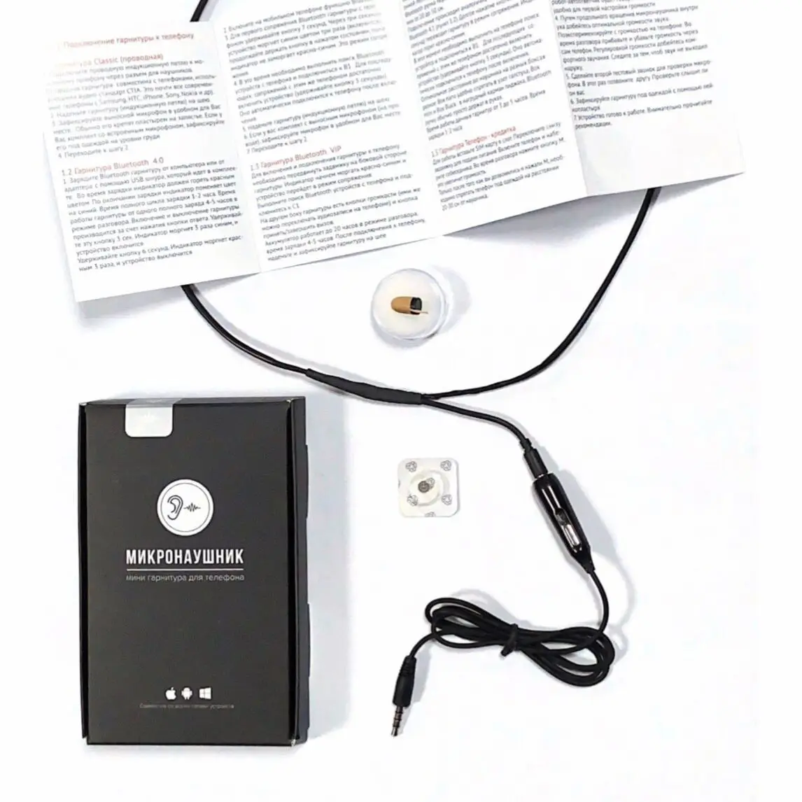 Микронаушник капсула Classic + батарейка в подарок! Студентам в помощь!Микрнаушник капсула Classic — отличный бюджетный вариант капсульного наушника.— Подключение с помощью переходника. Микрофон на уровни груди под одеждой.— Совместим с телефонами со стандартным разъемом.— Отличное качество звука.— Удобен в эксплуатации.— Не определяется металлоискателемКомплектация:1. Микронаушник капсула К2 (чуть больше, чем К3 и с инжектором телесного цвета)2. Гарнитура черного цвета3. Микрофон4. Батарейка Sony 337 SR416W5. Упаковка, инструкция по эксплуатации на русском языке
