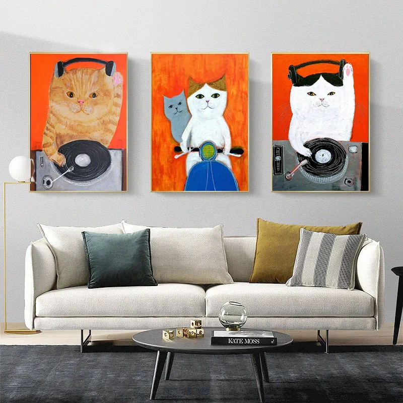 Мультяшные милые Коты, современные плакаты и принты, Картина на холсте, Настенная картина для гостиной, детской спальни, домашний декор для детской комнаты