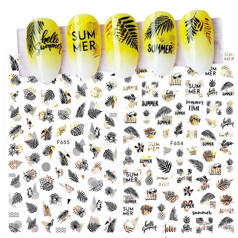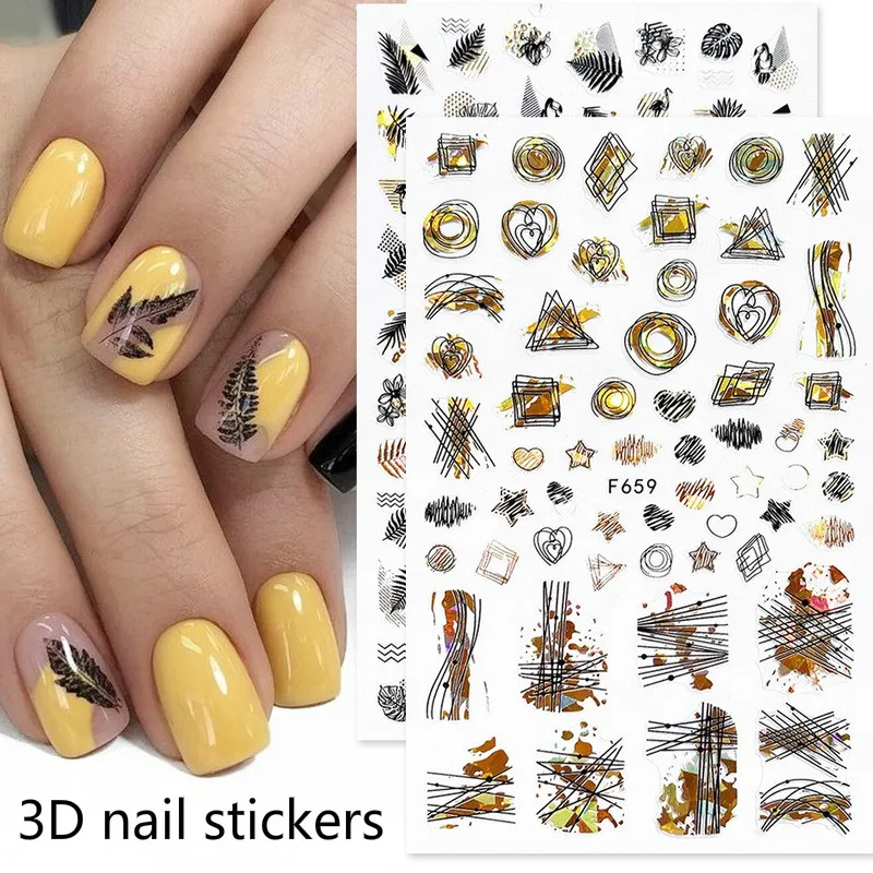 Наклейки для дизайна ногтей 3D Самоклеящиеся абстрактные геометрические наклейки с изображением животных, Листьев, цветов, переводные наклейки для маникюра для украшения ногтей, 1 шт.
