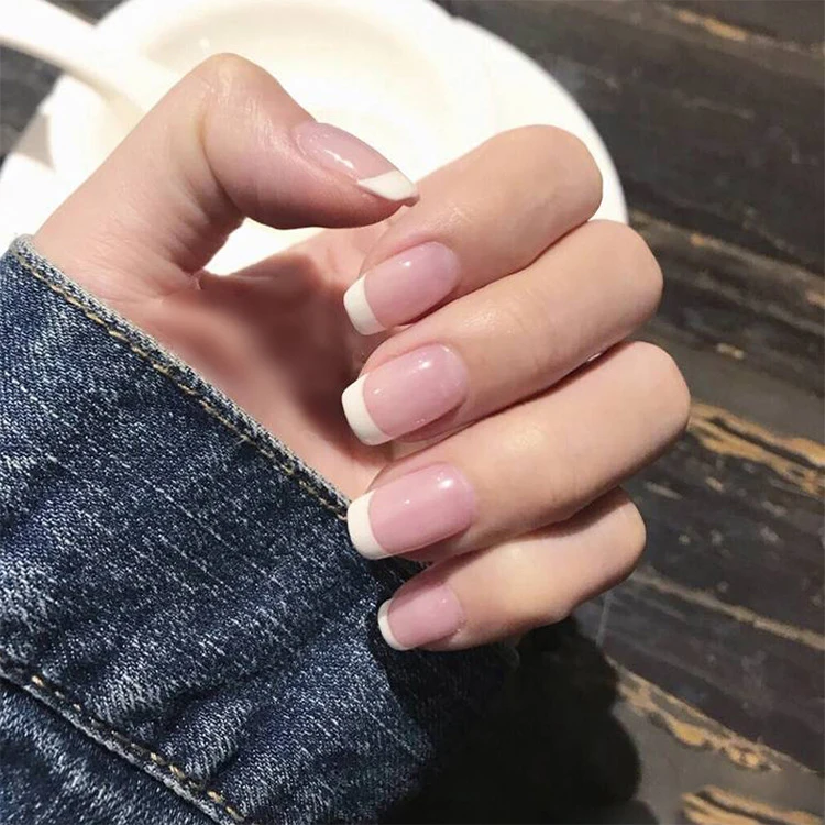 Накладные ногти, 24 шт.компл., голые, розовые, французские, съемные, ультратонкий гель-клей для УФ-лампы, накладные ногти с клейкой лентой