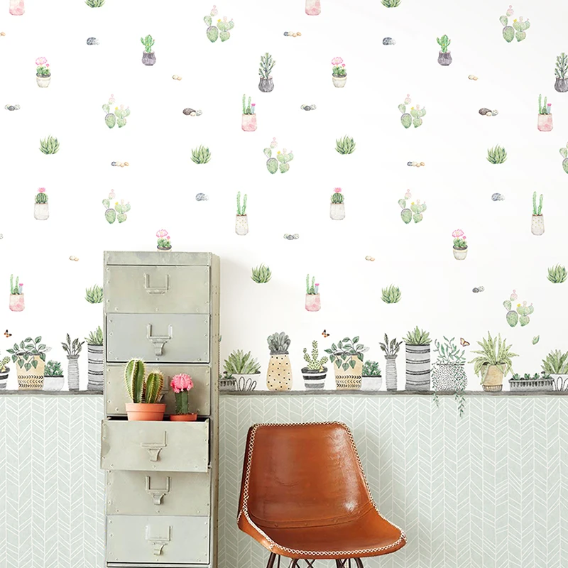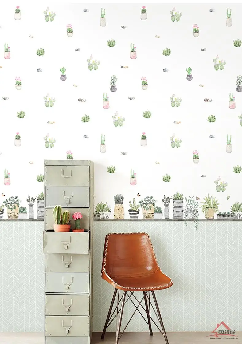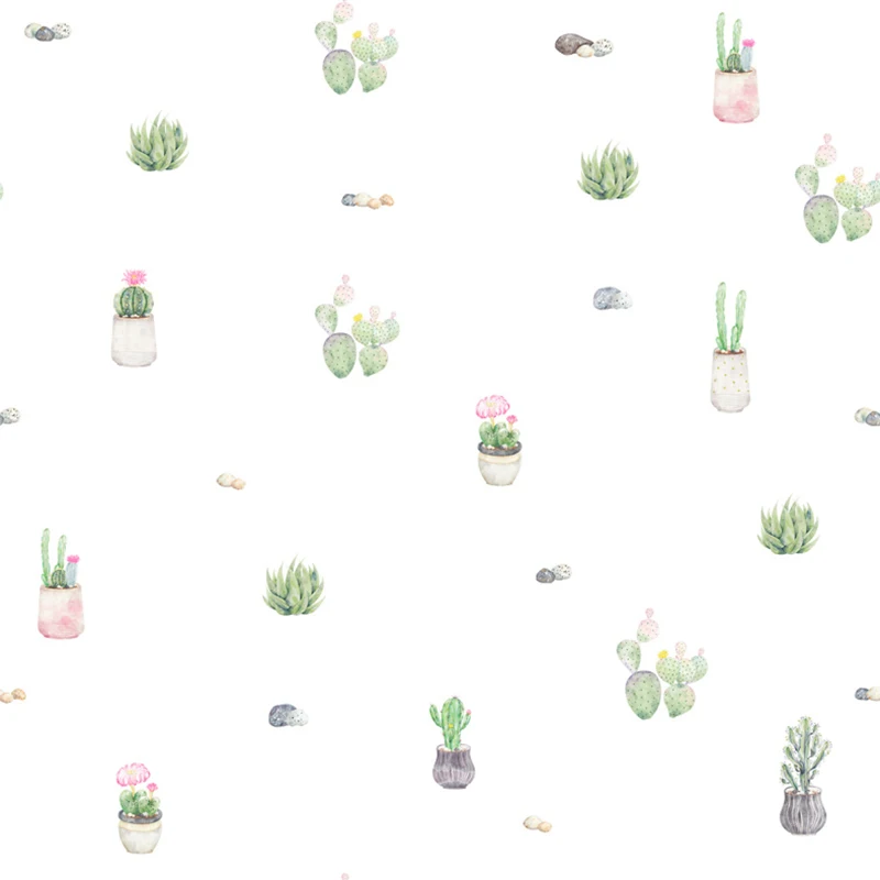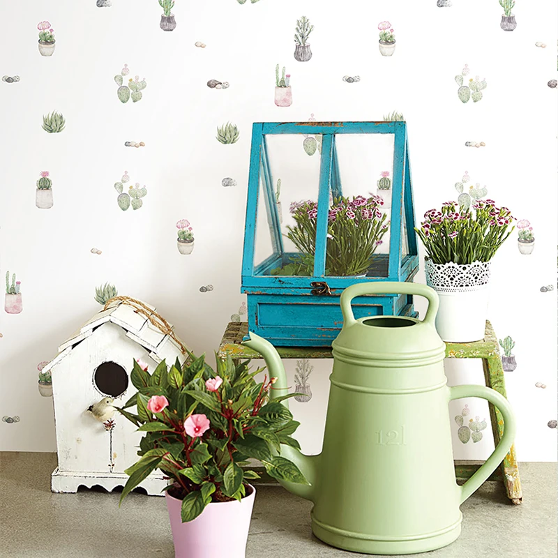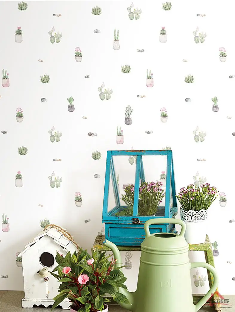 Фотообои из ПВХ с рисунком кактуса в горшке для детской, спальни, гостиной, детского сада