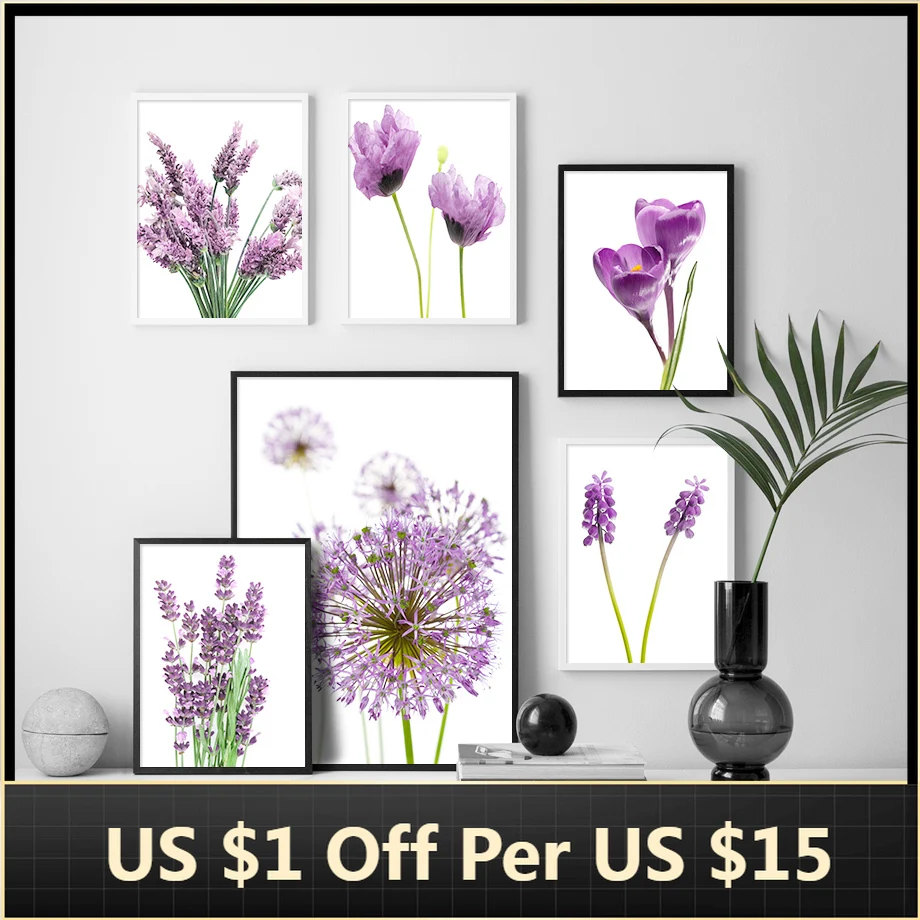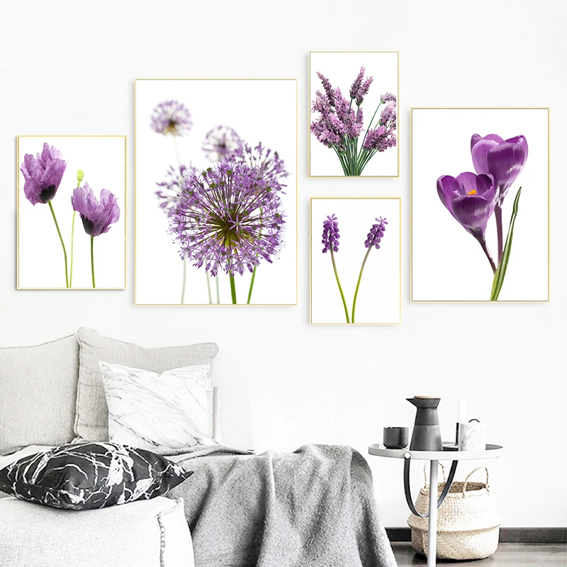 Картина на холсте Лаванда Мак осень цветок Allium лист растение Настенная печать скандинавский постер Настенная картина для декора гостиной