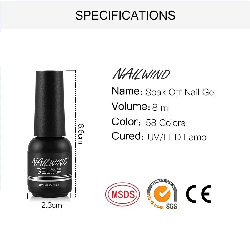Характеристики Товара:Название бренда: NAILWINDНазвание: отмачиваемый гель для ногтейОбъем: 8 млЦвет: 30 цветов sИзлеченная: УФ/Светодиодная лампаМы уверены, что наш Гель-лак лучшего качества на Aliexpress.-Качество-наш первый приоритет.-Светильник, почти без запаха (только верхнее покрытие и основа имеют умеренный запах), мы применяем только органическую текстуру для защиты вашего здоровья.-Цвет будет сиять до 30 дней.-Цвета на выбор, подходят для всех случаев.Шаг за шагом:-1. Форма ногтя. Слегка смочите поверхность ногтевой пластины. Дезинфицировать.-2. Нанесите базовый слой основы от кутикулы до свободного края (не забудьте запечатать край ногтя). Высушите ногти под светодиодный светильник в течение 10 секунд или УФ-светильник в течение 2 минут.-3. Нанесите тонкое пальто отмачиваемого геля на выбор. Свободный край крышки. Лечение: 30 секунд в светодиодный светильник, или 2 минуты в УФ-лампе.-4. Повторите 2-е тонкое покрытие отмачиваемого гель-лака на ногти. Высушите под светодиодный лампой в течение 30 секунд или УФ-светильник в течение 2 минут.-5. Нанесите верхнее пальто. Свободный край крышки. Лечение: 30 секунд в светодиодный светильник.-6. Удалите липкий остаток на ногтях с помощью очищающего средства. Затем нанесите питающее масло кутикулы для увлажнения влаги в кутикулу и кожу вокруг ногтя.Для удаления:-1. Отмачивайте ногти в акриловом удалителе в течение 5 минут.-2. Аккуратно Наденьте на каждый ноготь всю эмаль для ногтей.Внимание:1. Объем составляет 8 мл. Поскольку емкость бутылки составляет более 8 мл, гель для ногтей не будет полностью заполнен бутылкой!2. Плотно закрываются. Держите подальше от солнечного света. Хранить в недоступном для детей месте.