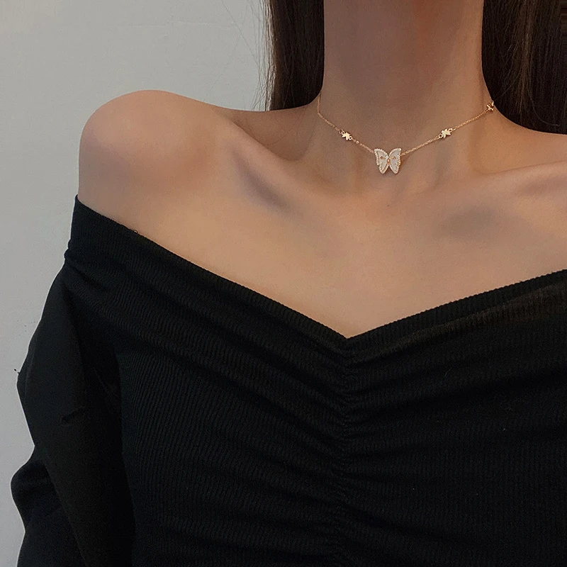 JUWANG 2021, цепочка до ключицы в Корейском стиле, колье, ожерелья, модные украшения для женщин, ожерелье-чокер в виде бабочки для тенниса, Харадзюку