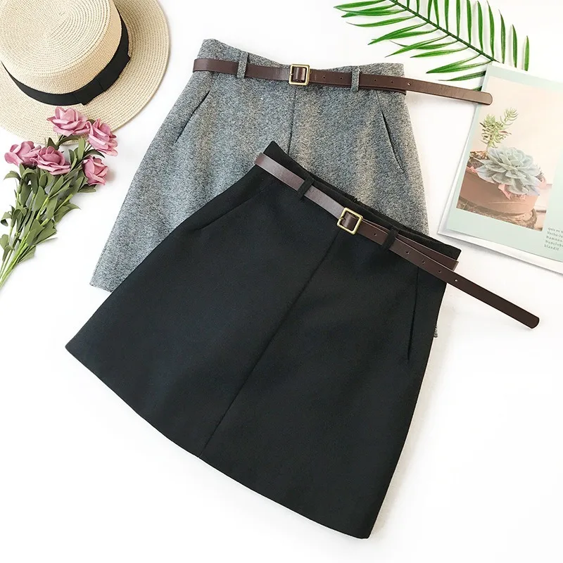 Женская шерстяная мини-юбка с поясом, винтажная элегантная офисная трапециевидная юбка с высокой талией, весна 2020