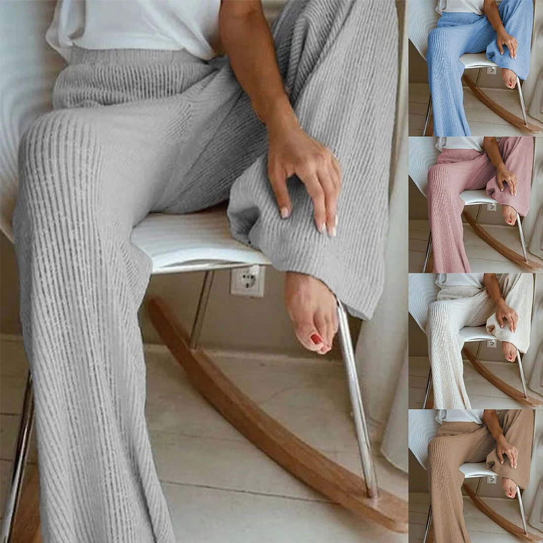 Женские Элегантные однотонные трикотажные брюки в рубчик с высокой ...