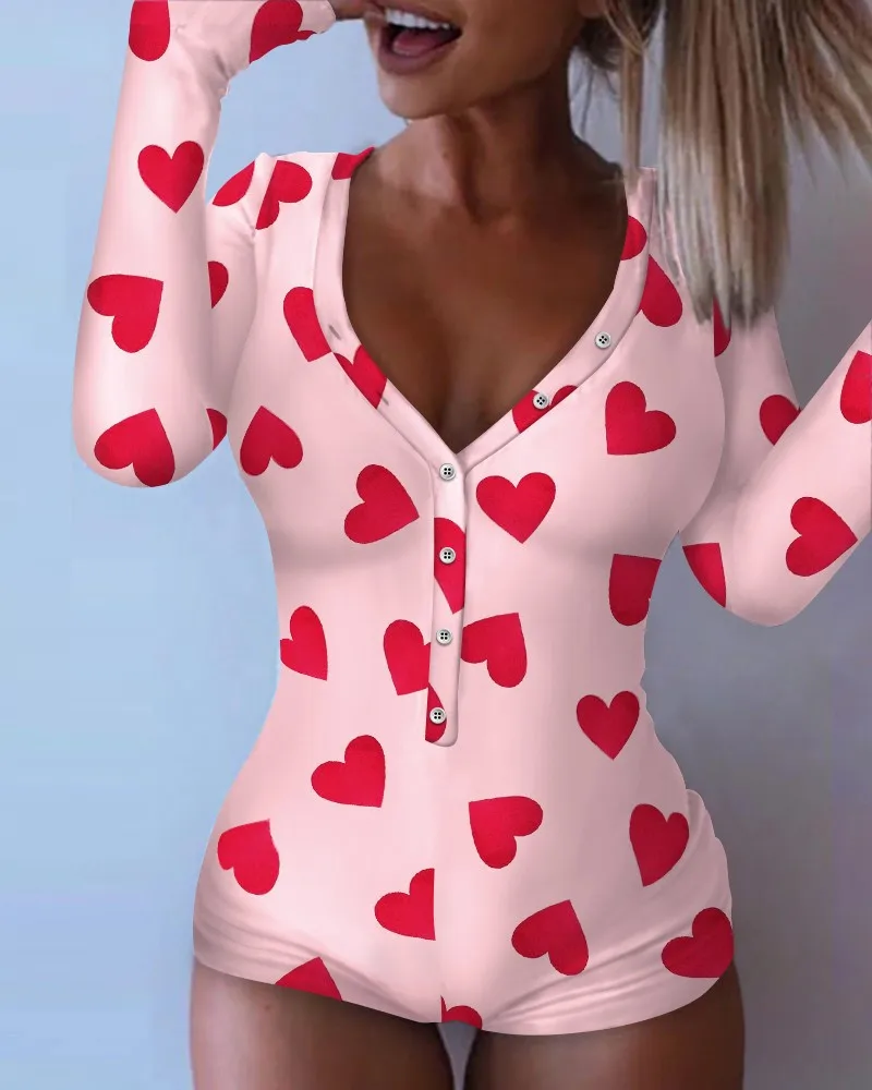 Женский комбинезон с принтом, повседневный комбинезон для взрослых с длинным рукавом и застежкой на пуговицах, сексуальный комбинезон с глубоким V-образным вырезом, 2021