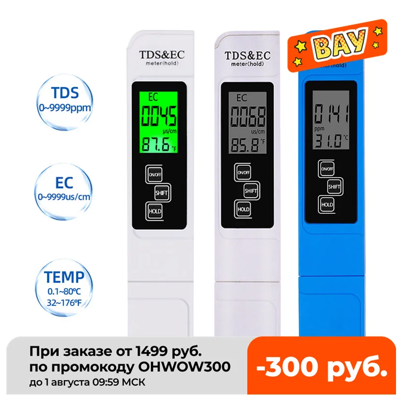 Измеритель температуры 3 в 1 TDSEC, тестер качества воды, ручка 0-9990ppm, монитор проводимости, инструмент чистоты для питьевой воды, аквариума