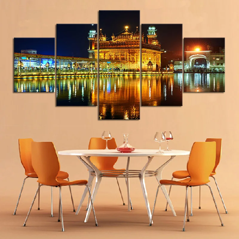 5 шт. пейзаж ночного освещения ЗНАМЕНИТЫЙ ИНДИЙСКИЙ достопримечательный сикх гурвара Золотой храм пейзаж холст постер HD печать домашний Декор Рамка