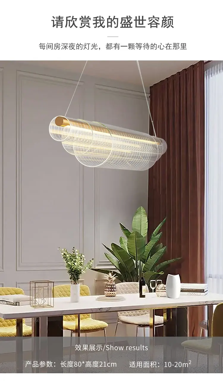 Корпус светильника: золотистый + прозрачный Материал: железо + акрил Источник светильник: светодиодный чип Подходит для: гостиной, столовой, спальни, виллы, вестибюля Размер: Длина 80 см/100 см/120 см (Регулируемая подвесная линия)