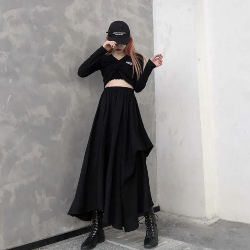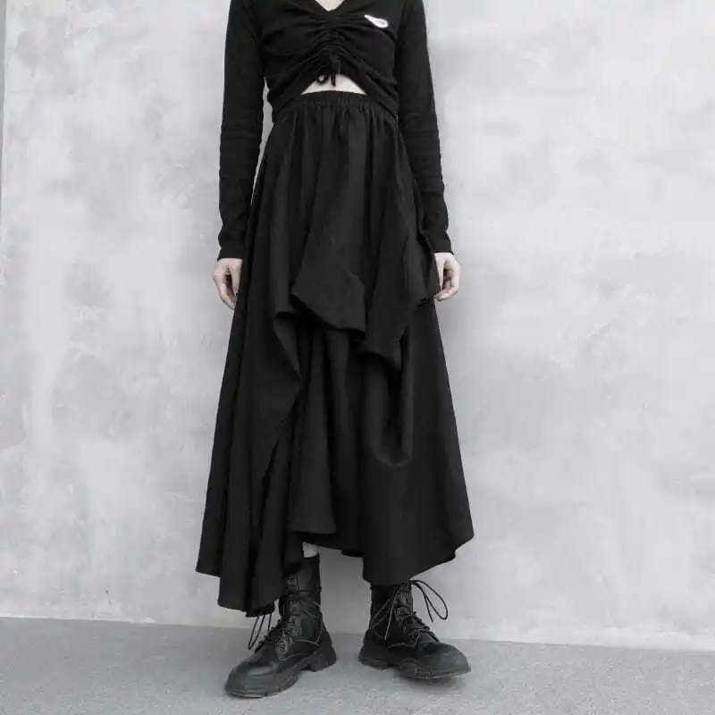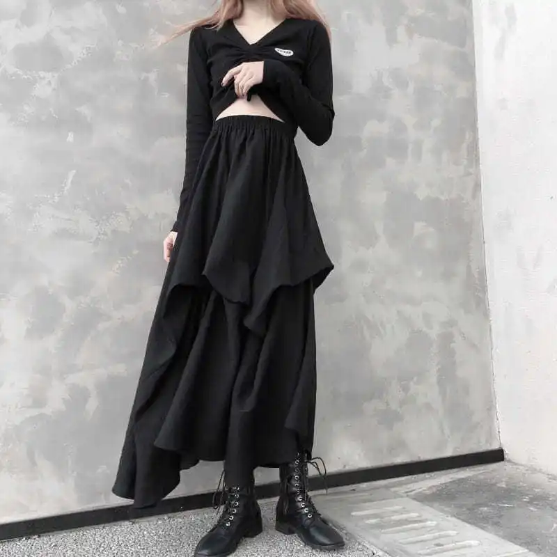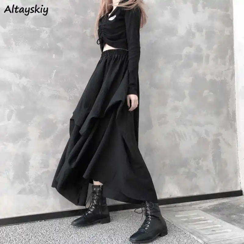 Длинные юбки женские шикарные с высокой талией эластичные до щиколотки в стиле преппи с оборками в стиле Харадзюку стильные Клубные трендовые ретро уличные женские юбки