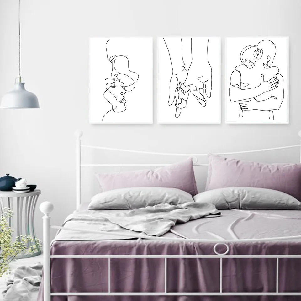 Абстрактная линия, холст, черно-белая стена, искусство, минималистский принт, картина в скандинавском стиле, Постер для влюбленных, современная картина, сексуальный Декор для спальни