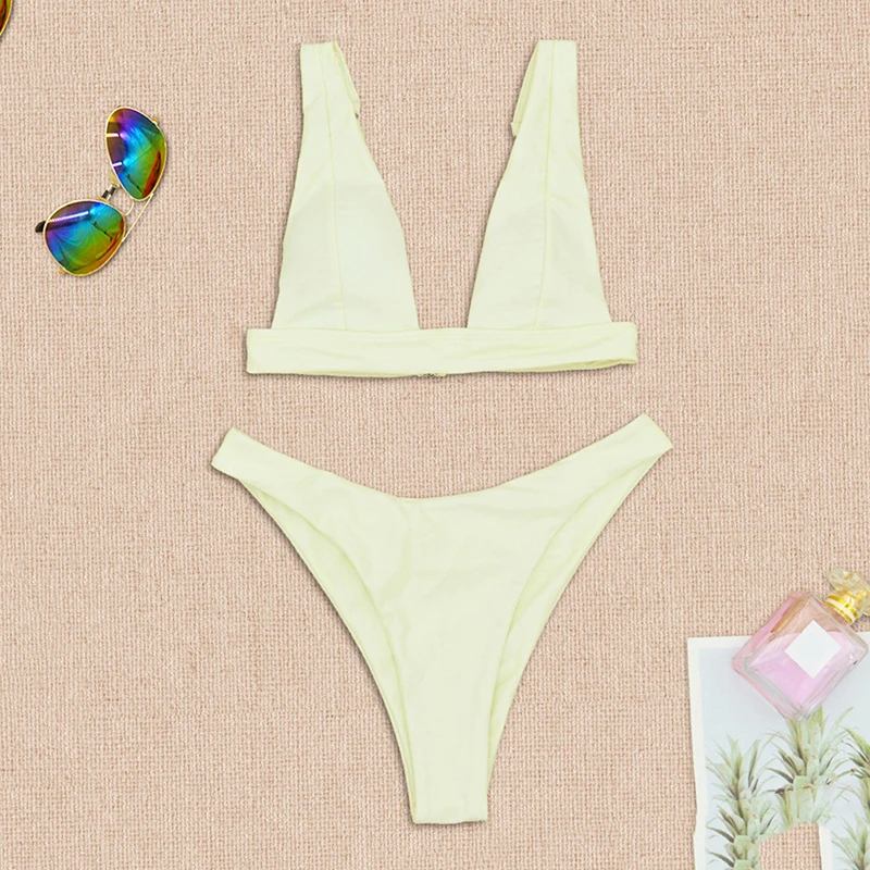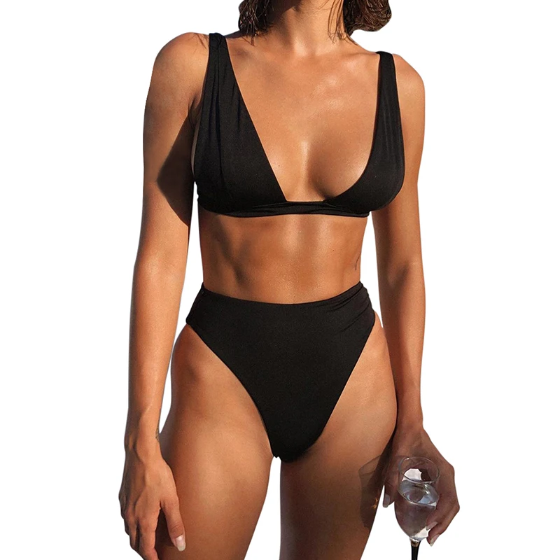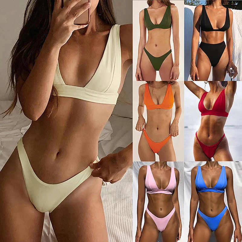Push Up Swimwear Two Piece Bikini SetSolid Bather Bathing Suit Swim Suit Female