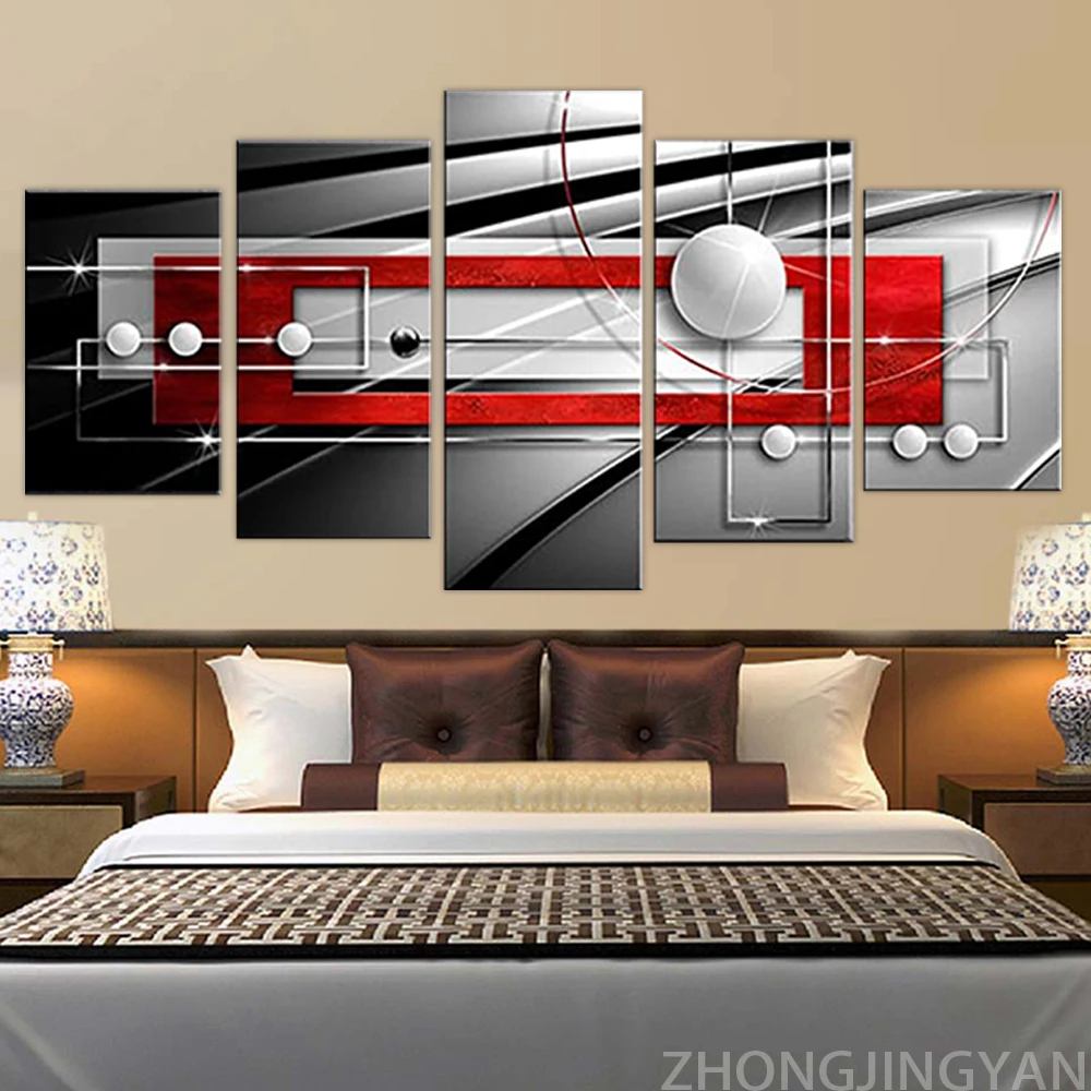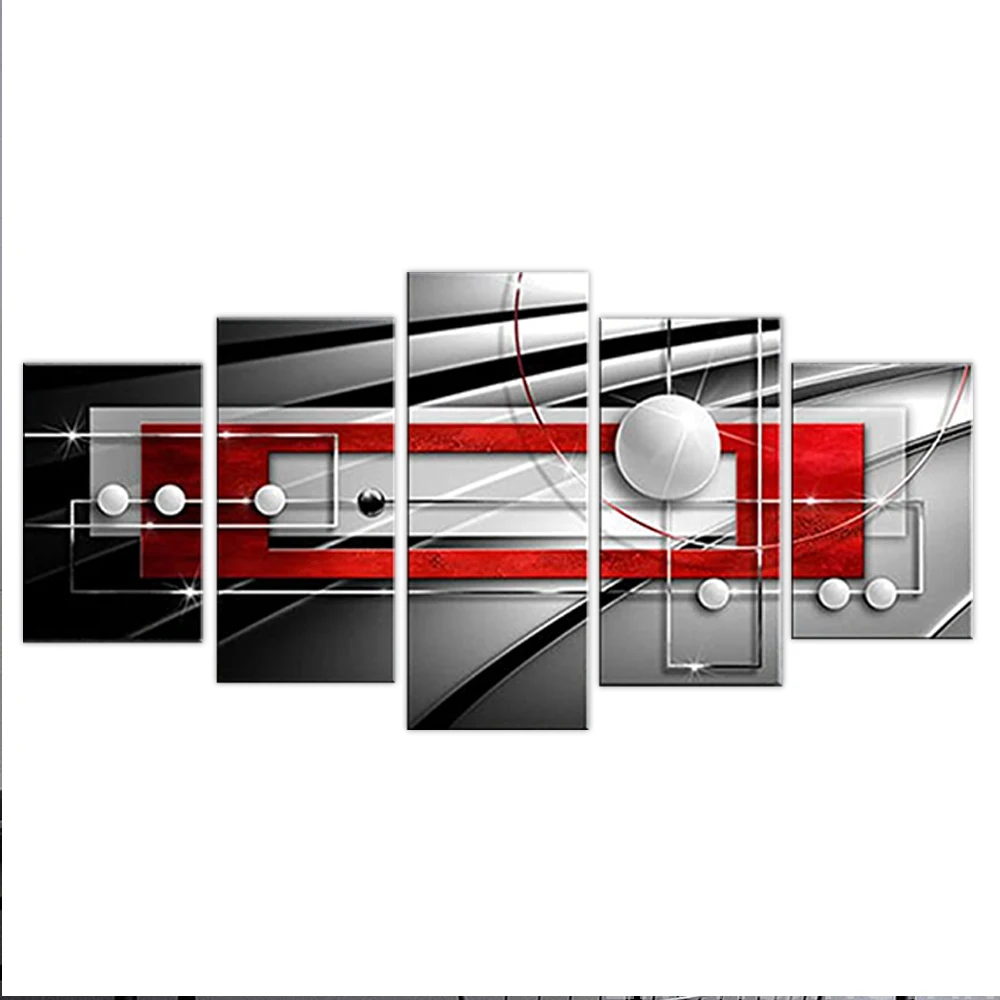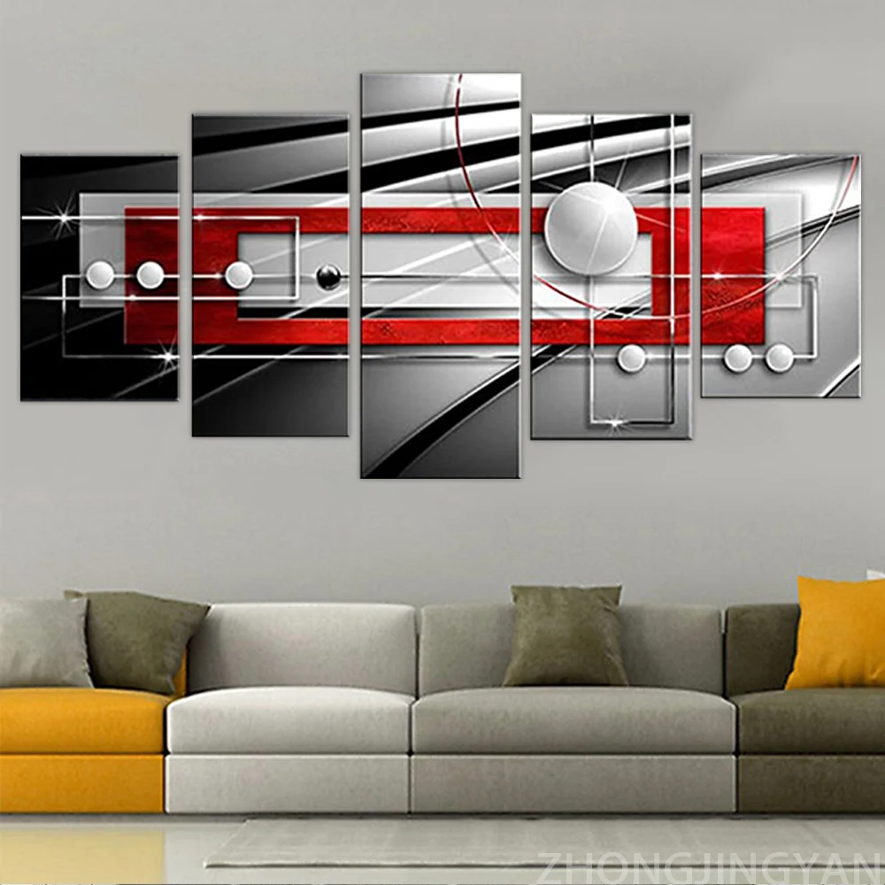 Современная симметричная черно-белая красная печать на холсте Современная живопись на стену 5 шт. декоративная картина готовая к подвешиванию для дома