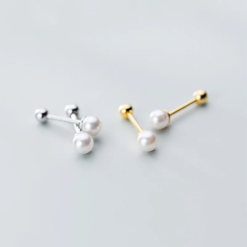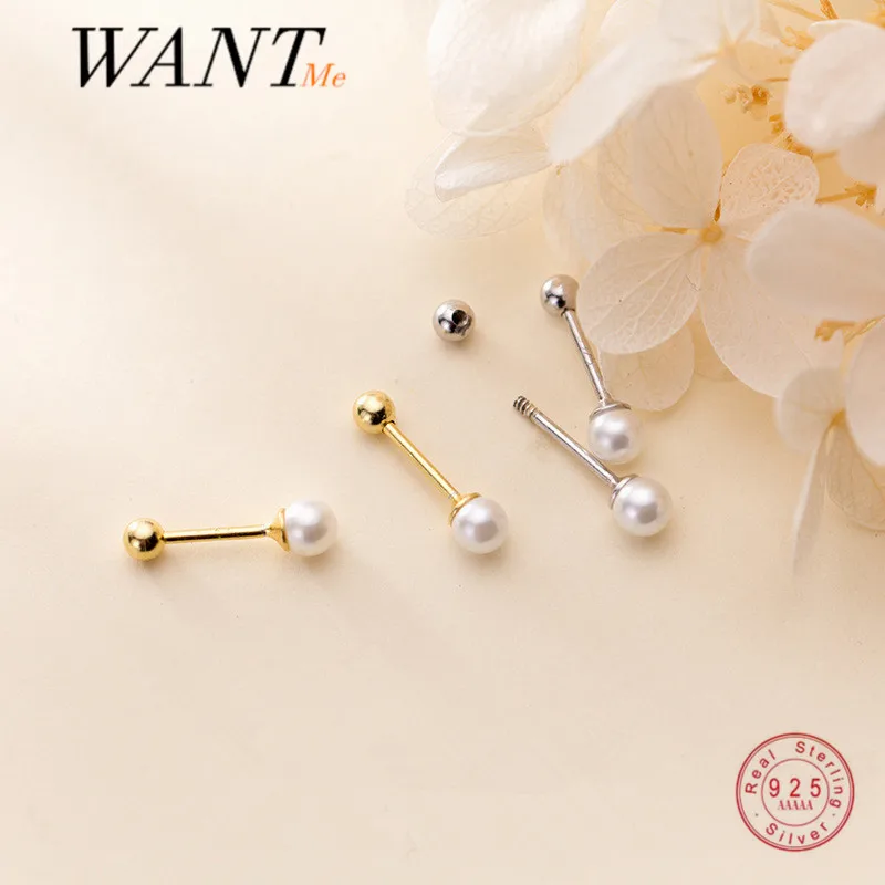 Женские маленькие серьги-гвоздики WANTME, круглая жемчужная бусина из настоящего серебра 925 пробы