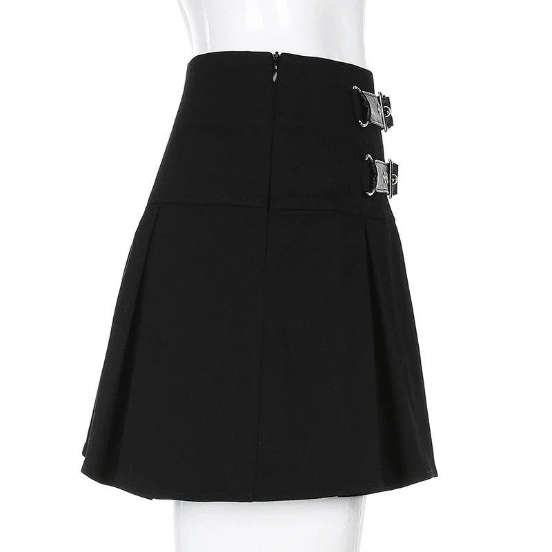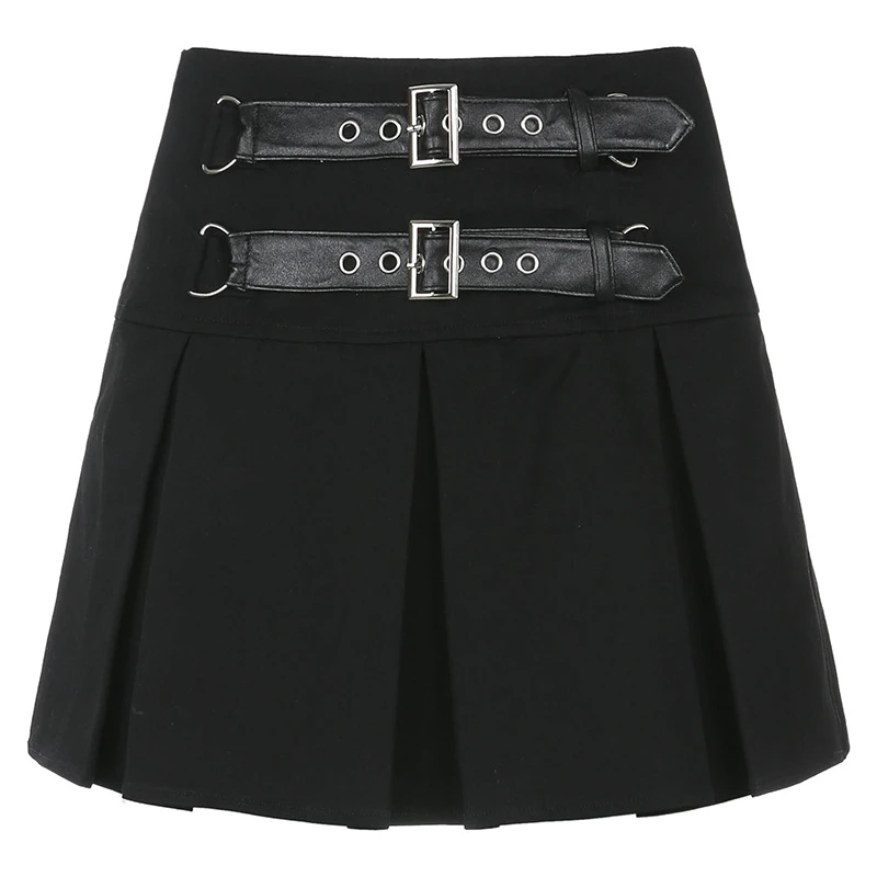 Черный Mall гот, эмо Egirl плиссированная мини-юбка Kawaii двойной ремень проушины с высокой талией E юбки для девочек Эстетическая одежда