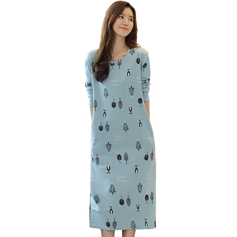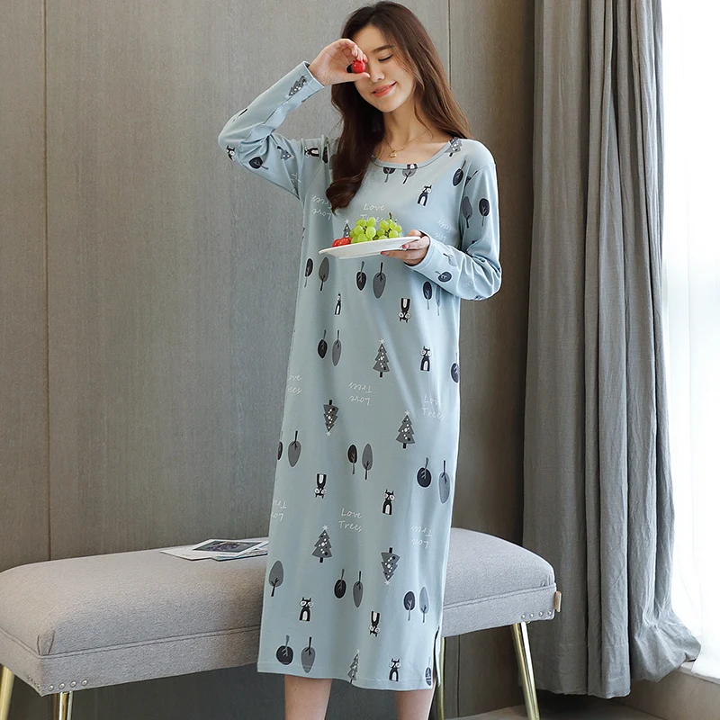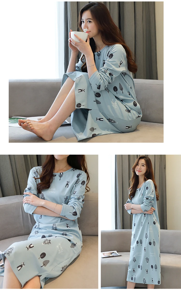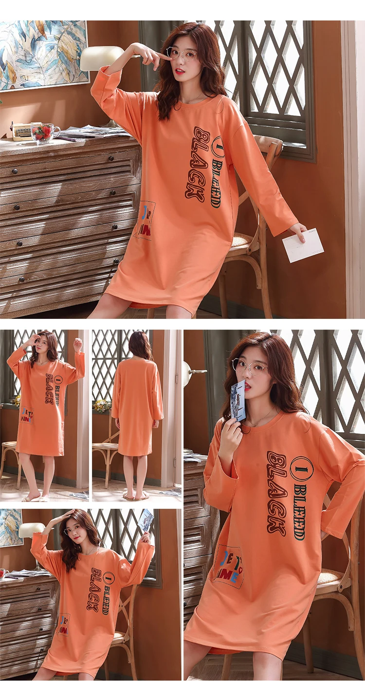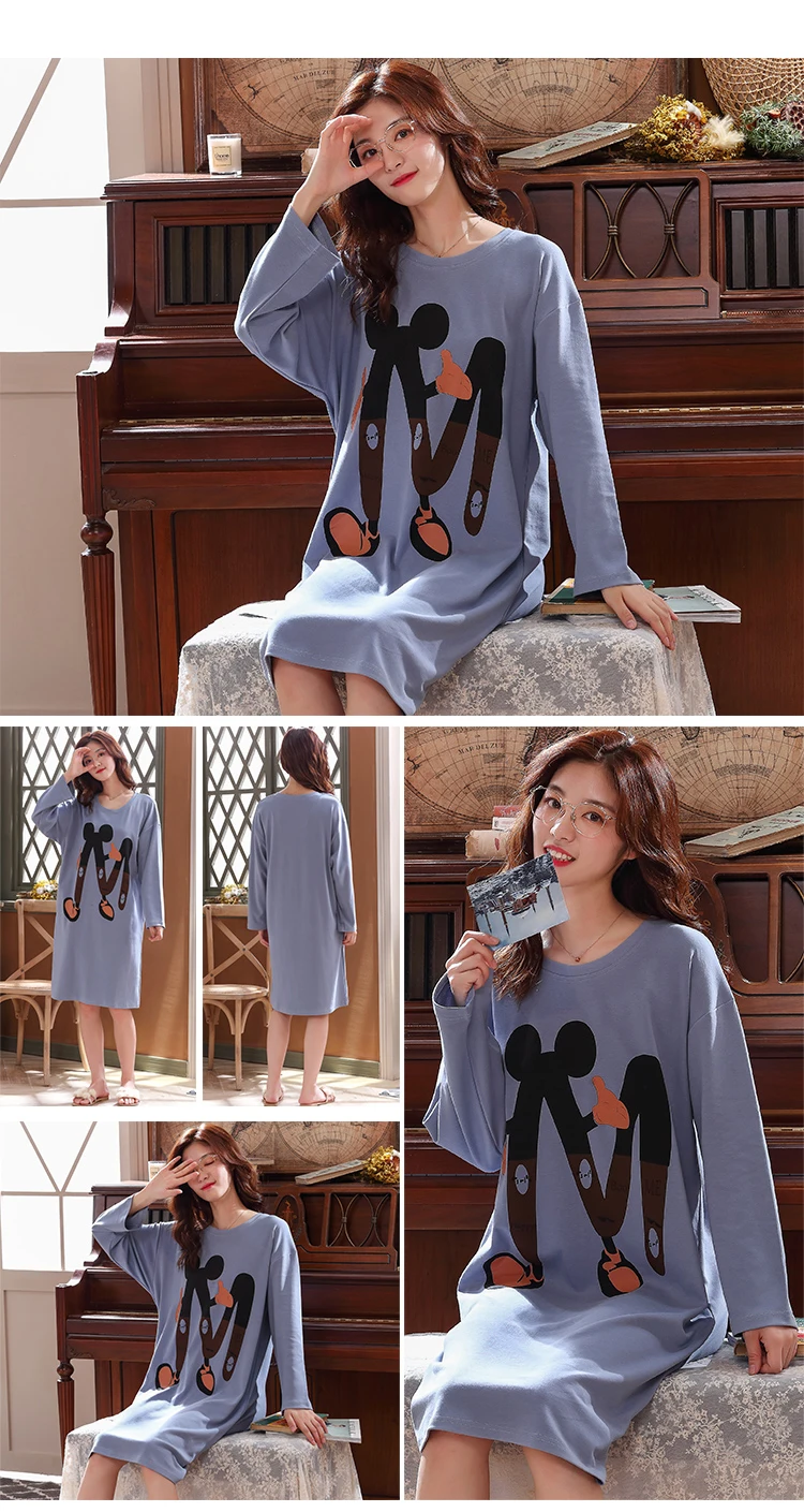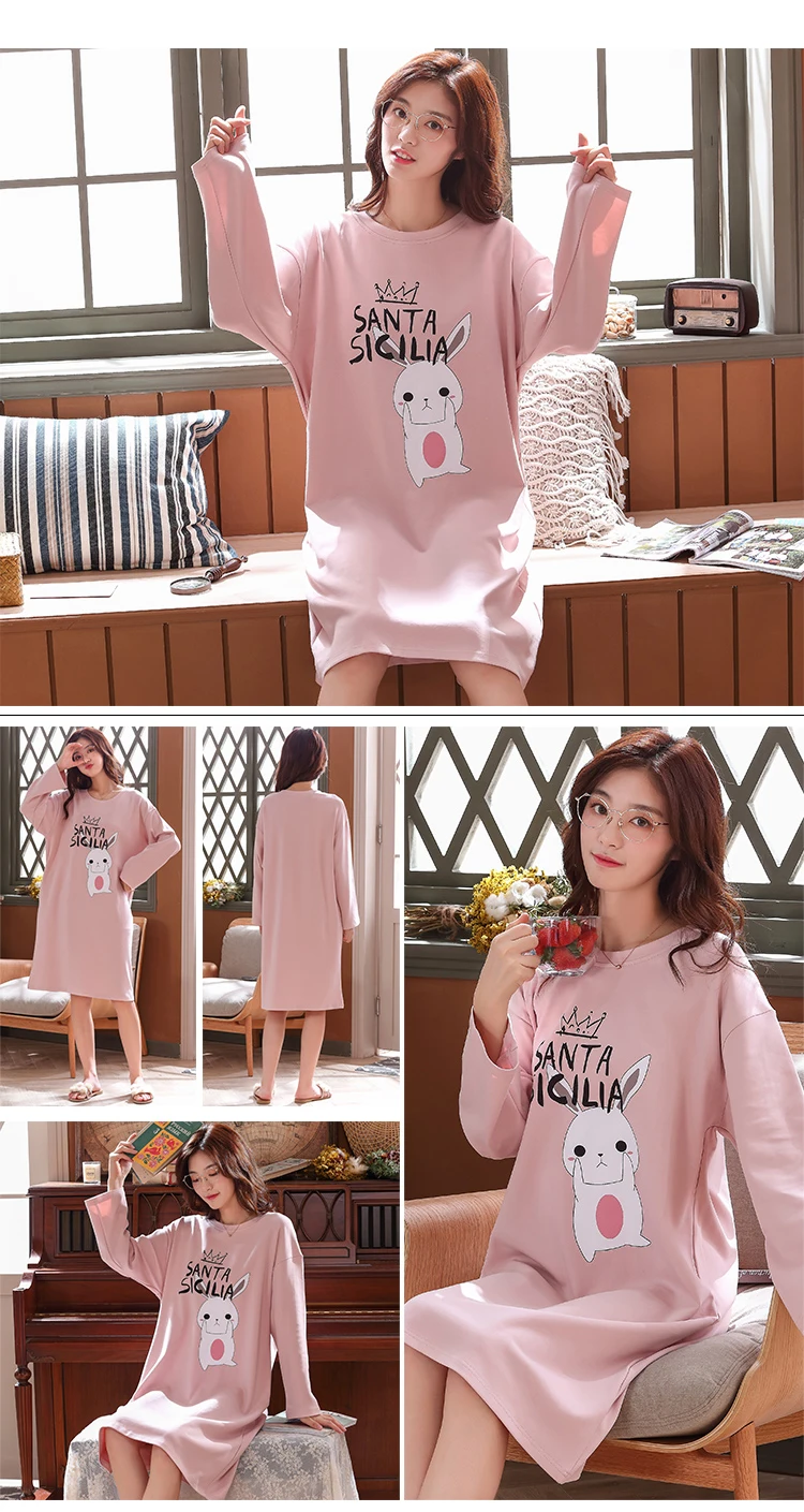 Женские ночные рубашки, Новое поступление 2021, весенне-осенняя Хлопковая женская ночная рубашка, одежда для сна с длинным рукавом, мультяшный корейский стиль Q21