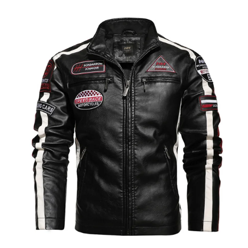 Куртка мужская из натуральной кожи, мотоциклетная теплая байкерская...
