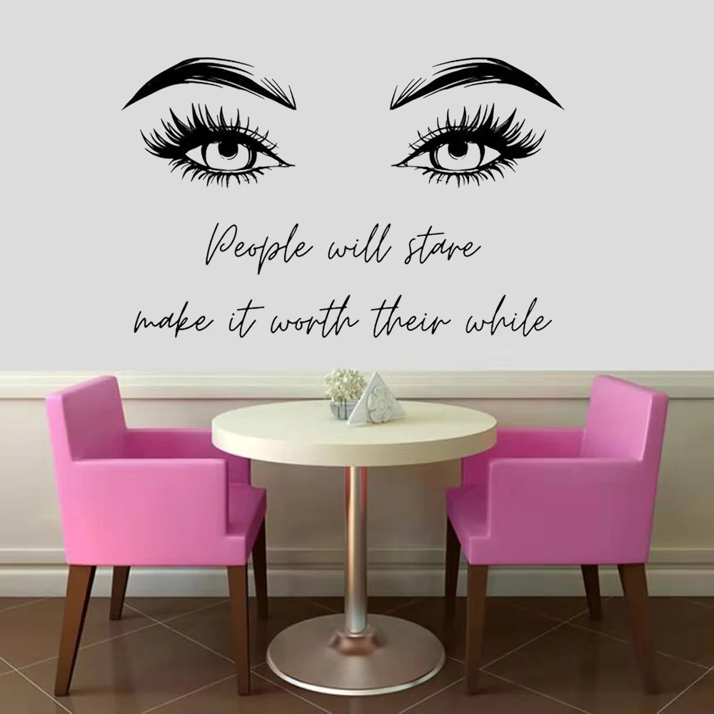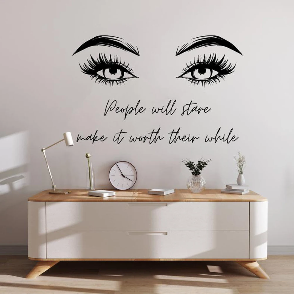 Люди будут смотреть, чтобы сделать наклейку на стену. Виниловые наклейки для салона красоты. Наклейка для макияжа глаз арт. Украшение для парикмахерских стен