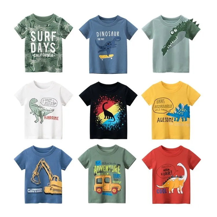 Детская футболка Yocute, Новинка лета 2022, детская одежда, хлопковая одежда для мальчиков, Повседневная стильная футболка оверсайз с мультяшным драконом для мальчиков