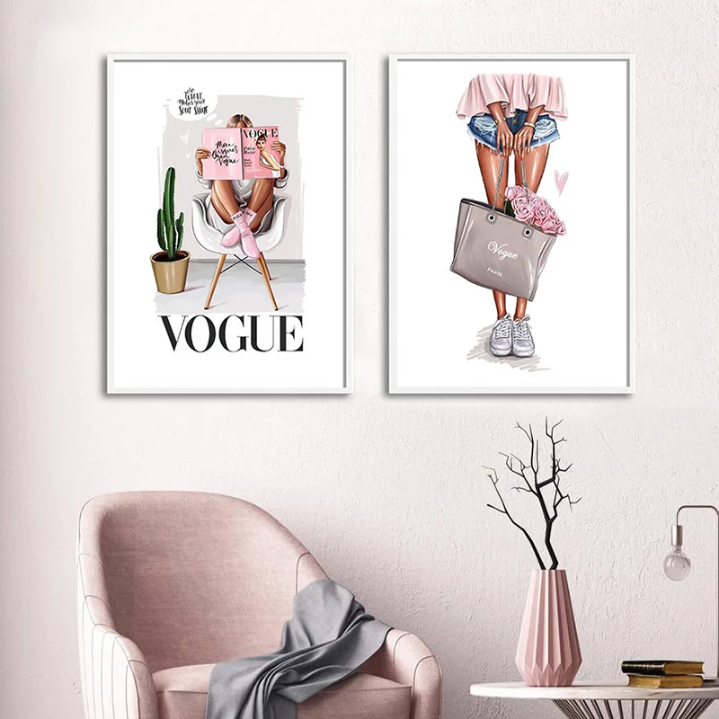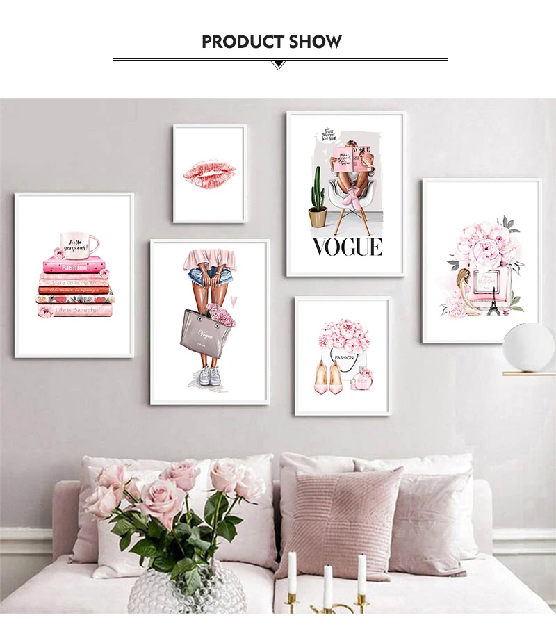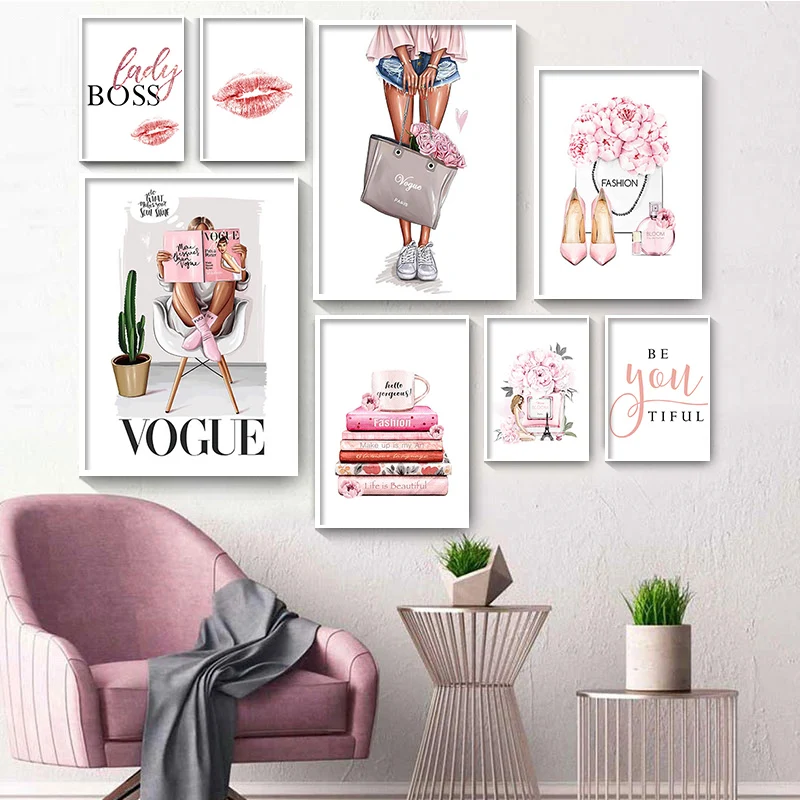 Модный розовый декоративный постер для комнаты для девушек, искусст...