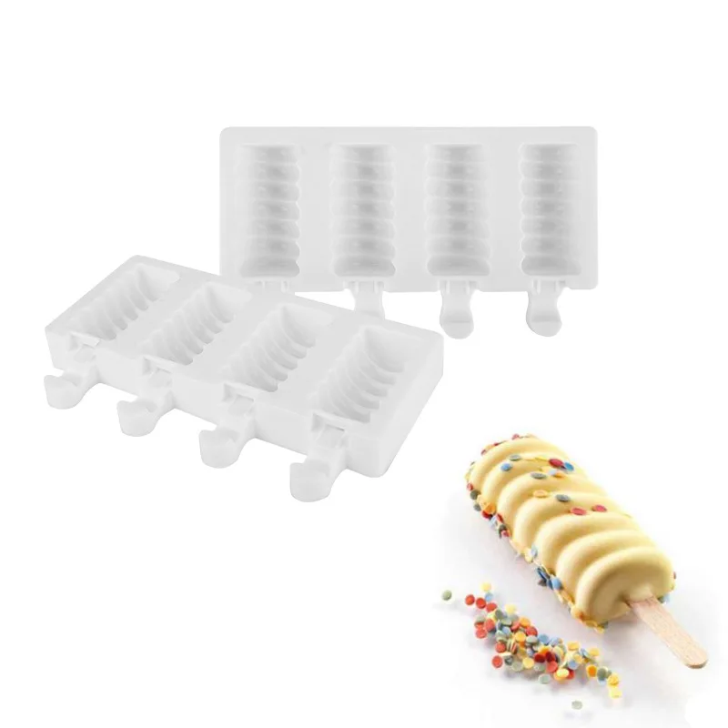 Силиконовый Лоток Для Льда Формы для крема на 4 ячейки, безопасный для пищевых продуктов, для изготовления эскимо, домашняя морозильная камера форма мороженое на палочке, инструменты для домашнего мороженого