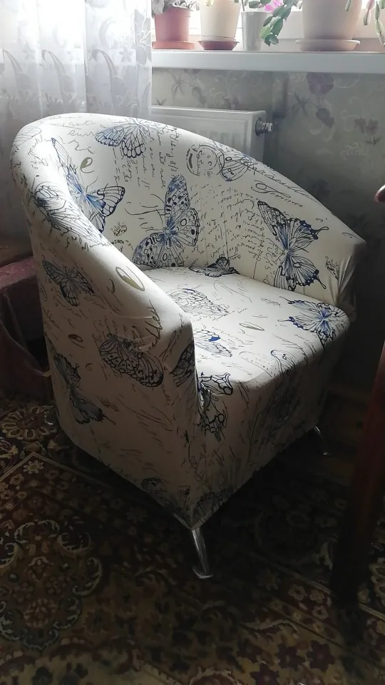 Ткань не плохая, но резинка пришита маленькая, на среднее кресло пришлось растянуть резинку до разрыва на ней