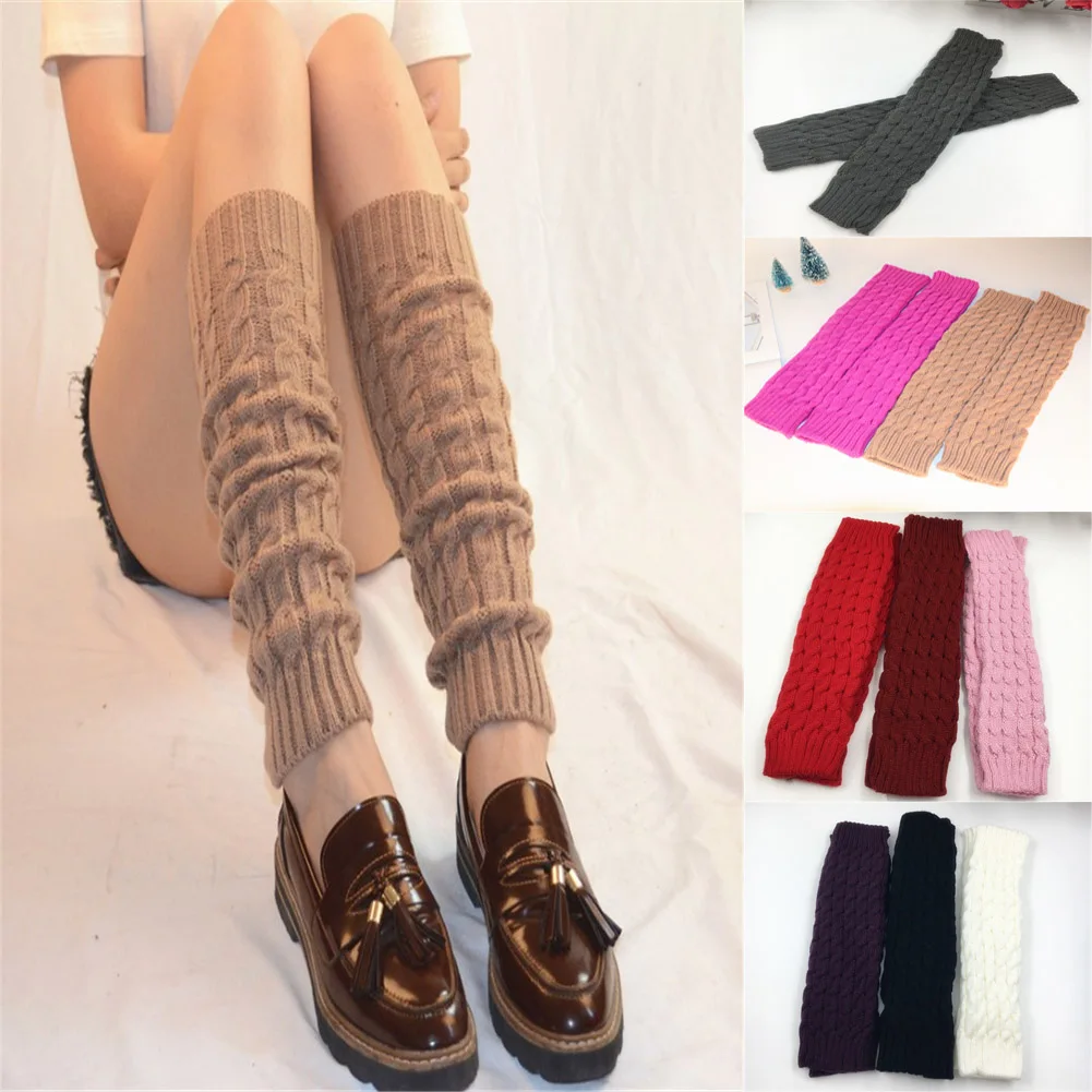 1 пара японских наколенников для девочек, женские зимние теплые гетры, однотонные вязаные носки, вязаные крючком длинные сапоги, чулки