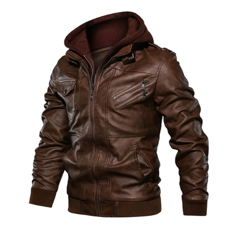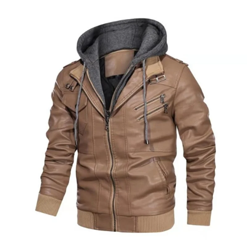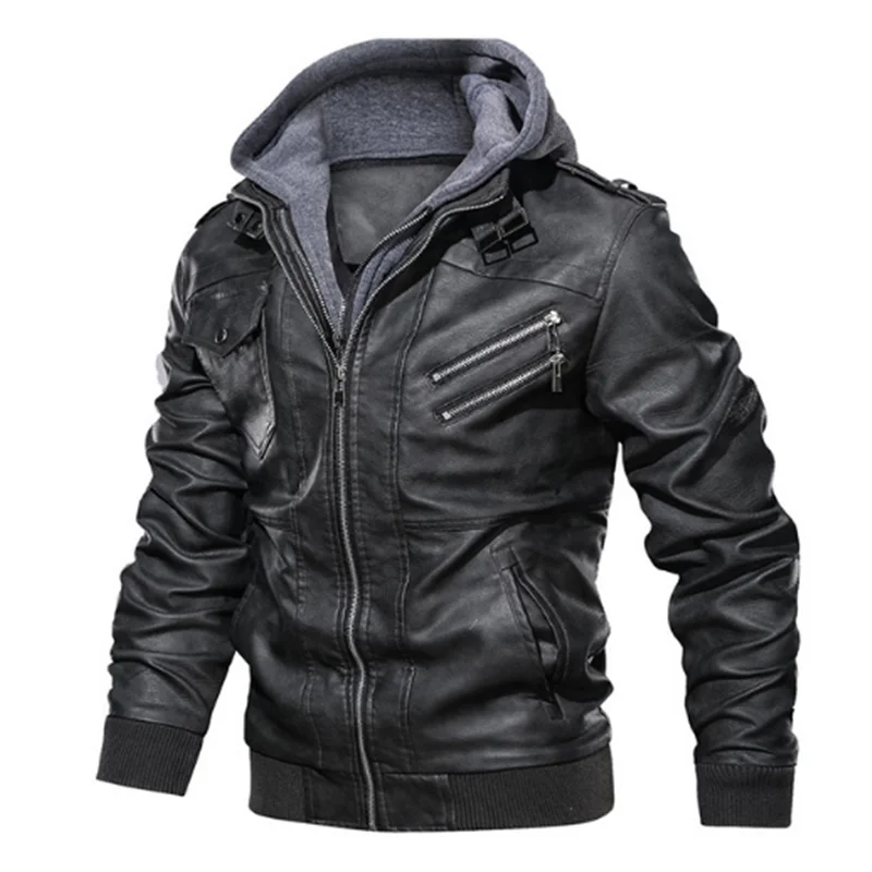 Мужская куртка из искусственной кожи, мотоциклетная ветровка с капю...