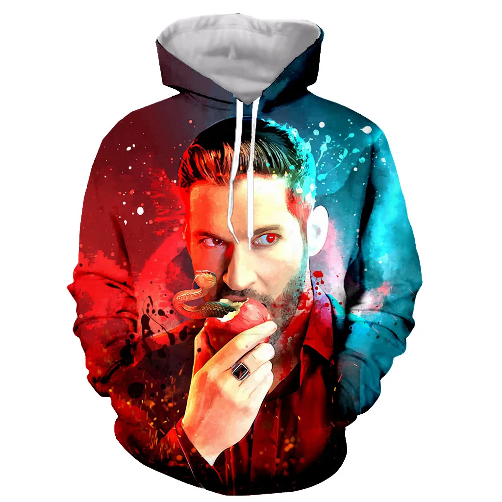 Новинка, забавная модная 3D-печать Lucifer Morningstar с длинными рукавами, на молнии, толстовки, свитшоты, куртки, для мужчин и женщин, Прямая поставка