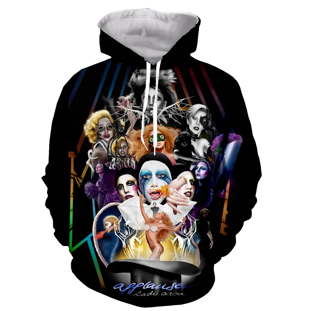 Забавная Новая мода Леди Гага с длинным рукавом 3D печать молниятолстовкикофтыкурткиМужчиныЖенщины Прямая поставка