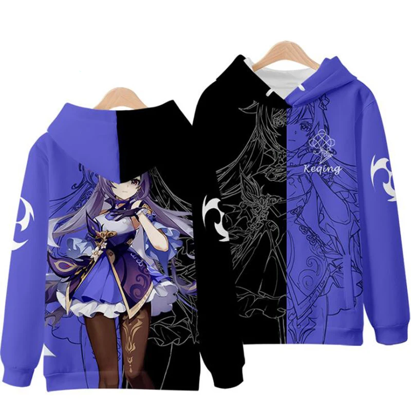 Игровые костюмы для косплея Genshin Impact, унисекс 3D толстовки с капюшоном и свитшоты Нин Гуан Кекин Барбара Кли фишл Чжун ли рассвет дилук