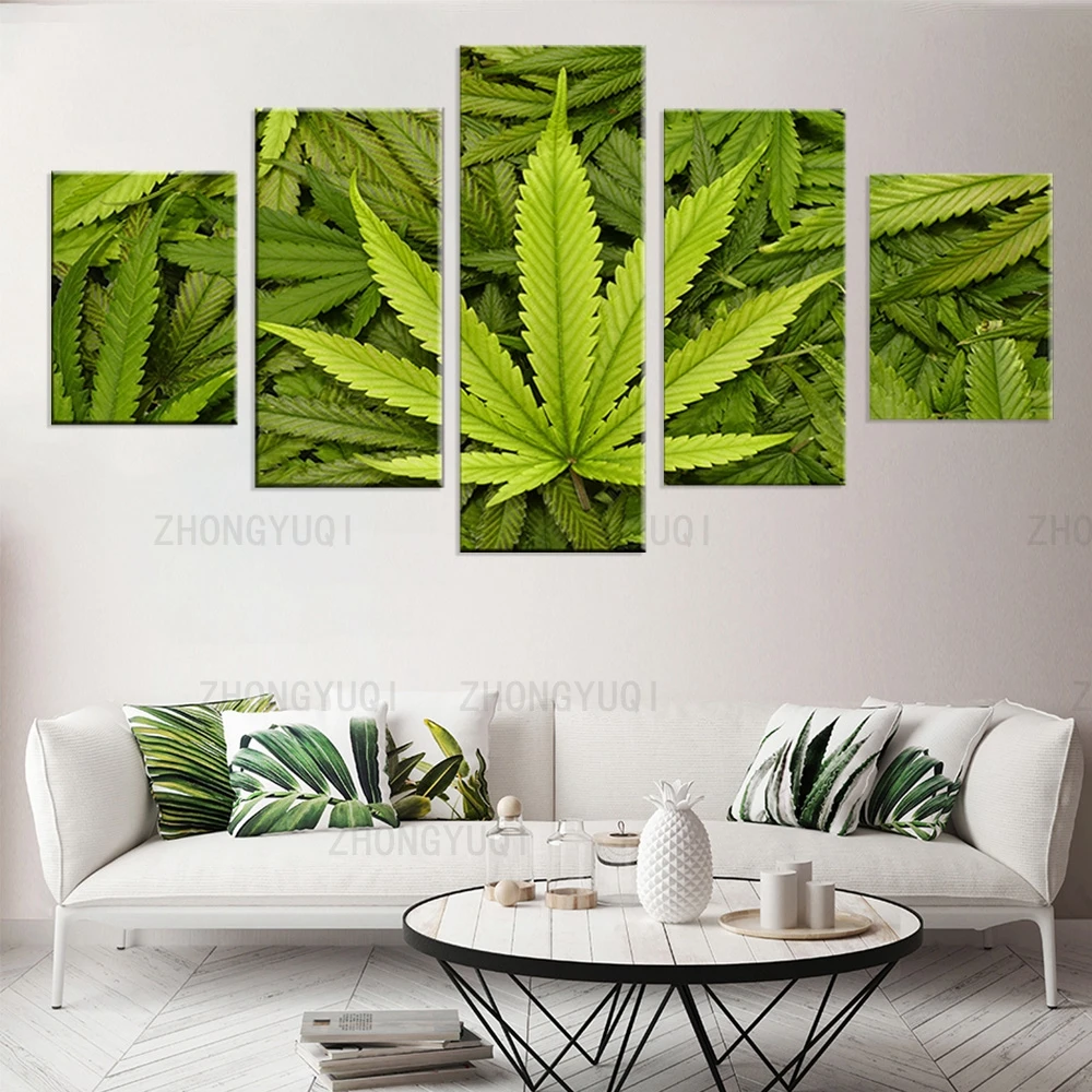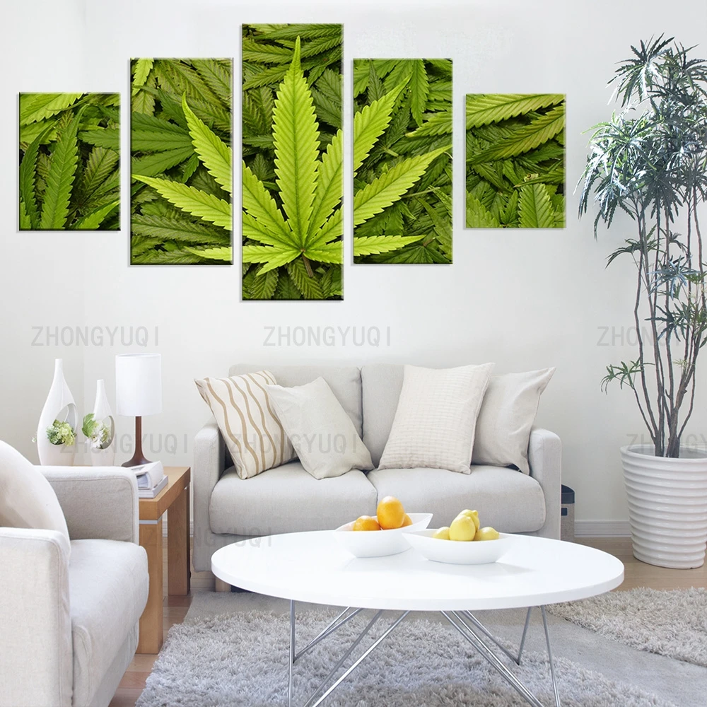 Модульные картины, 5 панелей, холст, Зеленый лист, горшок, картина на стену, искусство, картина, домашний декор, картины для гостиной, рамка