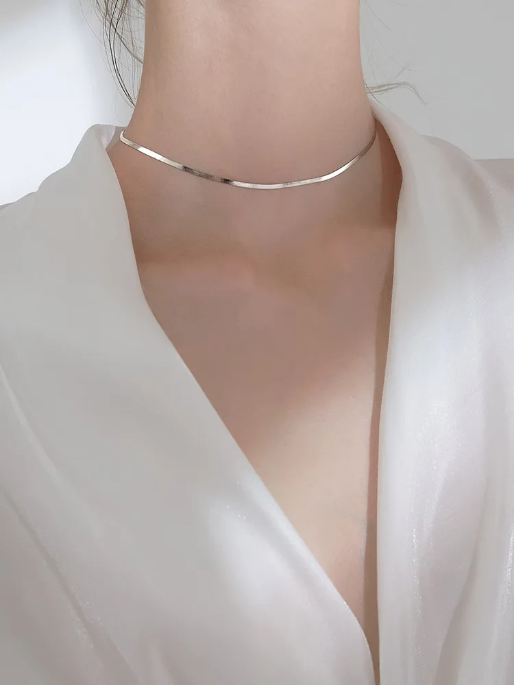 Чокер, аксессуары, ожерелье из стерлингового серебра 925 пробы с блестящей широкой цепочкой до ключиц, ожерелье для женщин, подарок на день рождения