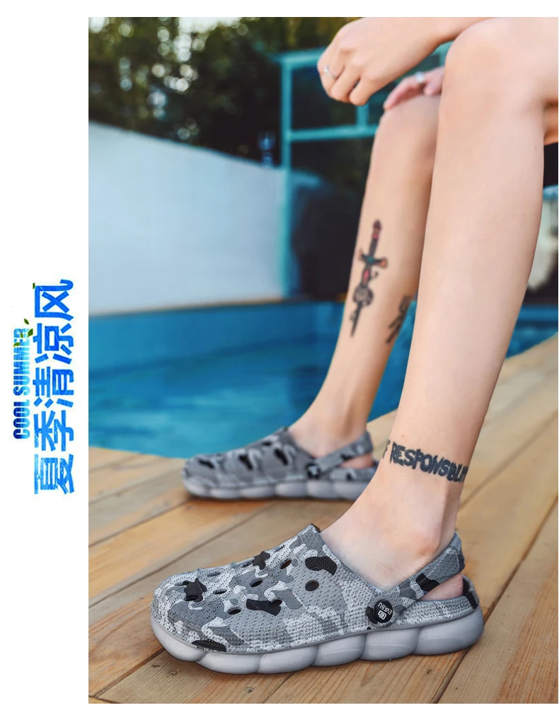 Мужские летние сандалии с дырками, уличные Нескользящие пляжные шле...