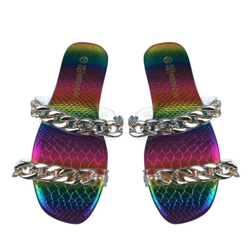 Женские прозрачные шлепанцы с цепочкой, ПВХ, плоская подошва, летняя обувь, большие размеры
