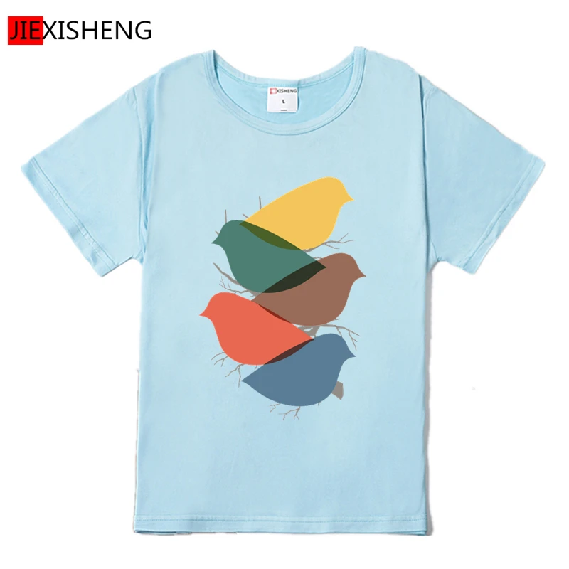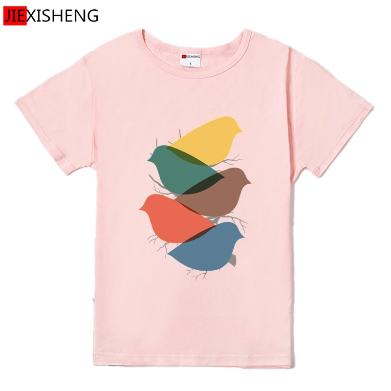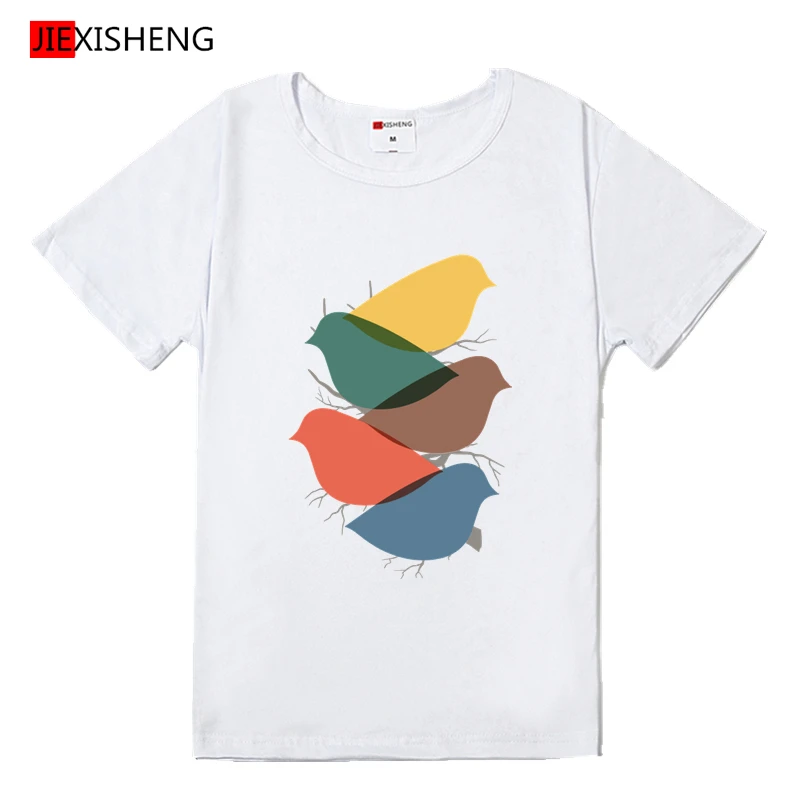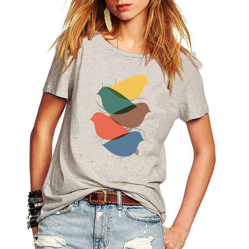 Женская футболка с геометрическим принтом птиц, новинка 2021, летние футболки с коротким рукавом, 5 цветов, размера плюс Tops Tees