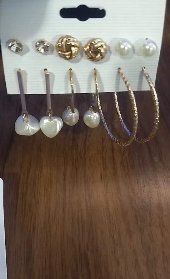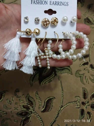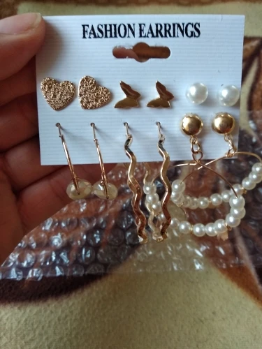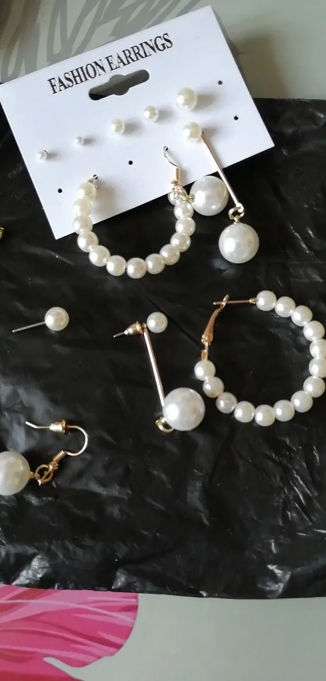 Красивые серьги, правда на одной бусинка отвалилась. Но думаю смогу приклеить. Собственно висящие серьги с большими бусинами оказались уж очень тяжёлыми, минут 5 носила и потом ушы тянули. Думаю они максимум для фото, но не для жизни. Остальные прикольные)