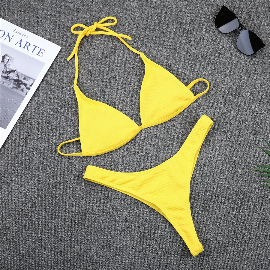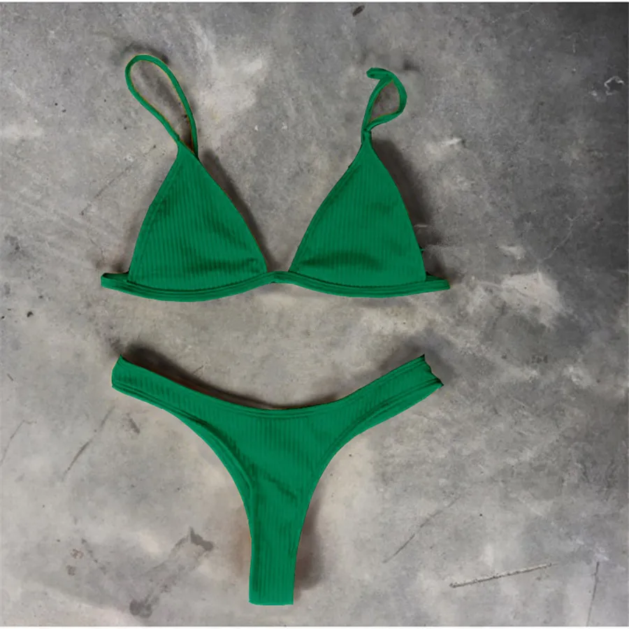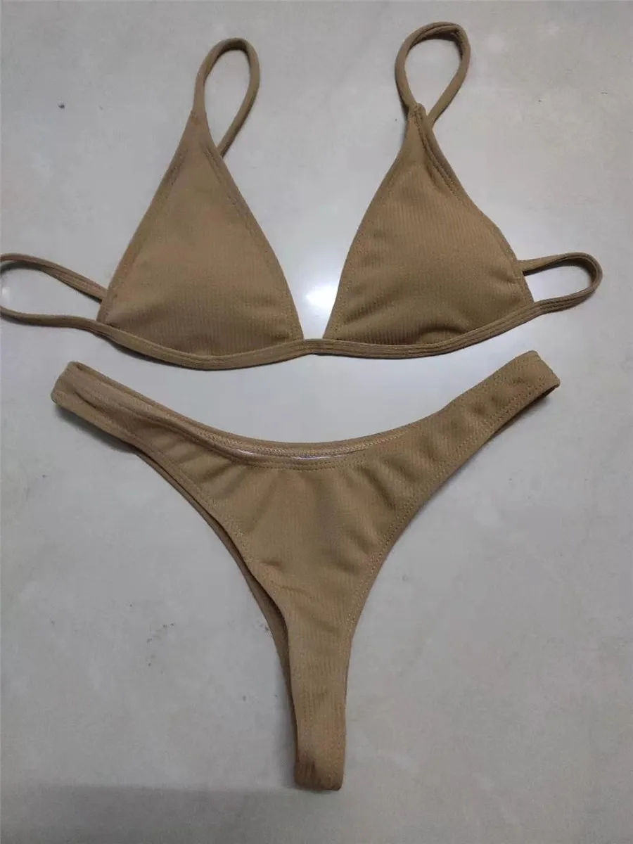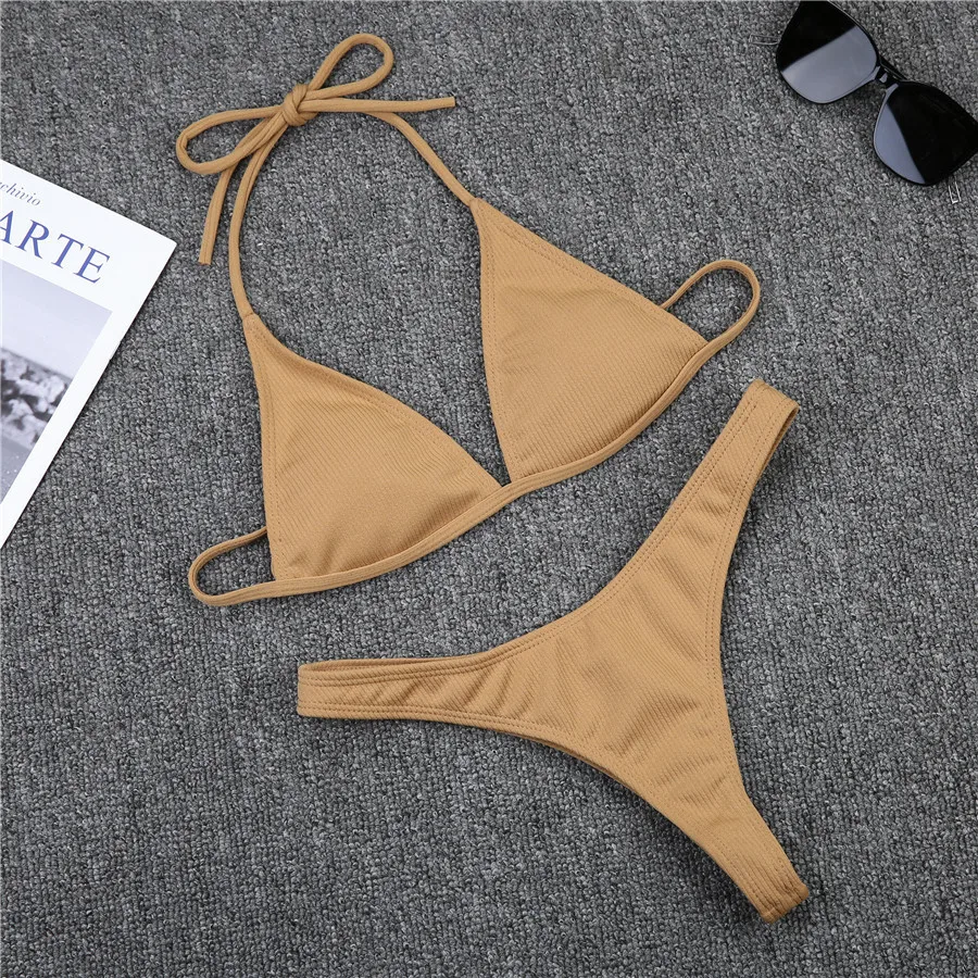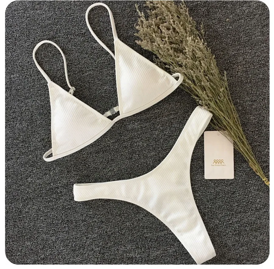 Купальник пуш-ап женский однотонный, пикантный комплект бикини в бразильском стиле, купальные костюмы в рубчик, стринги, пляжная одежда, 2021