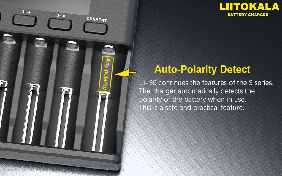 Lii-S6 6-слот авто-полярности обнаружения Зарядное устройство* Автоматическое определение полярности.* 12 В/3 А вход с общей мощностью 36 Вт.* 6 слотов работают независимо. Его можно заряжать вместе с различными аккумуляторами.* Может вместить 32700, 26650, 21700, 20700, Ni-MH SC и другие большие батареи* Различные защиты, безопасная зарядка.Параметры зарядного устройстваАвтомобильное зарядное устройство для обнаружения полярностиВход: 12 В/3 А постоянного тока (мин)Выход: DC 4,20 V 2000mA * 3; 1000mA * 6; 700mA * 6; 500mA * 6DC 4,35 V 2000mA * 3; 1000mA * 6; 700mA * 6; 500mA * 6DC 3,65 V 2000mA * 3; 1000mA * 6; 700mA * 6; 500mA * 6DC 1,48 V 500mA * 6Совместим со всеми перезаряжаемыми батареями;Ni-MH/Cd: AA,AAA,A,SC,C РазмерLi-ion/IMR/LiFePO4: 26650,20700,18650,18490,17700,17500,16340(RCR123),14500,10440Вопрос и ответВ: есть ли у Lii-S6 функция обнаружения емкости аккумулятора?О: он имеет дисплей уровня заряда, но его нельзя считать испытанием емкости аккумулятора. Этот дисплей записывает только то, сколько заряда зарядило зарядное устройство, что отличается от технологии обнаружения емкости аккумулятора. Это очень важно.В: есть ли в Lii-S6 зарядки 1,6 в никель-цинковая батарея?Ответ: нет. Не может заряжать 1,6 V никель-цинковая батарея.В: Может ли Lii-S6 зарядить 21700?О: Да, он может заряжать 21700 и 20700 батареи.