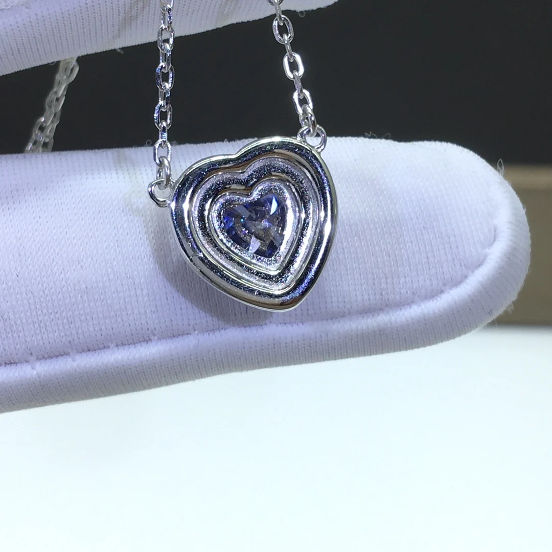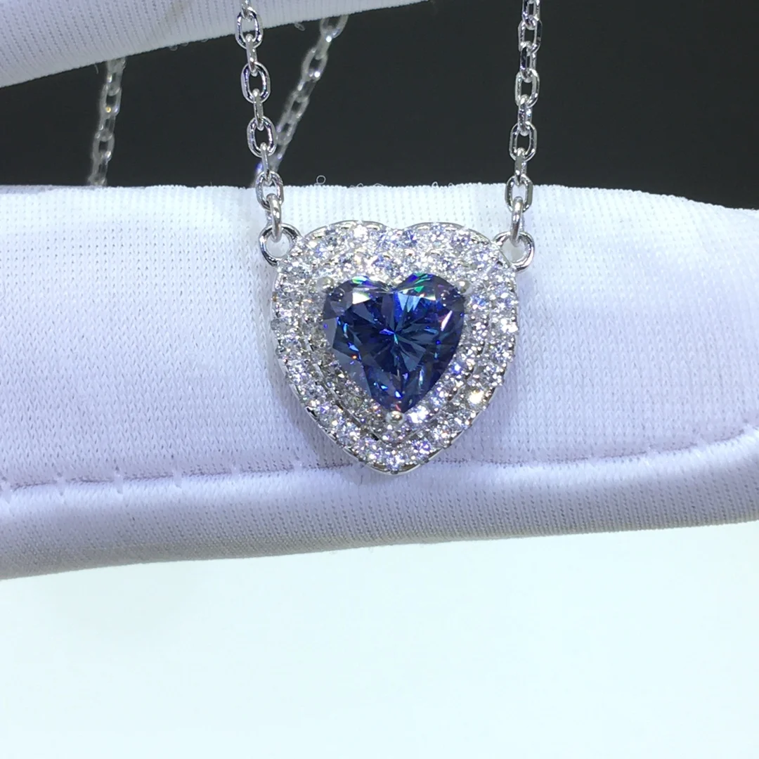 Серебро 925 оригинальный 1 карат алмазов тест последние высокое качество принты Blue Heart Муассанит кулон ожерелье сапфир цепи ко Дню Святого Валентина