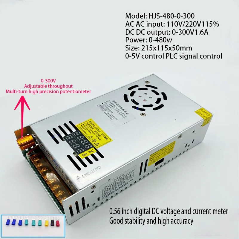 Название продукта: HJS-480-0-300 0-300V1.6A двойной цифровой дисплей Импульсный источник питания 0-480 Вт