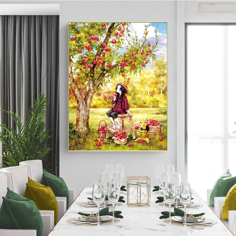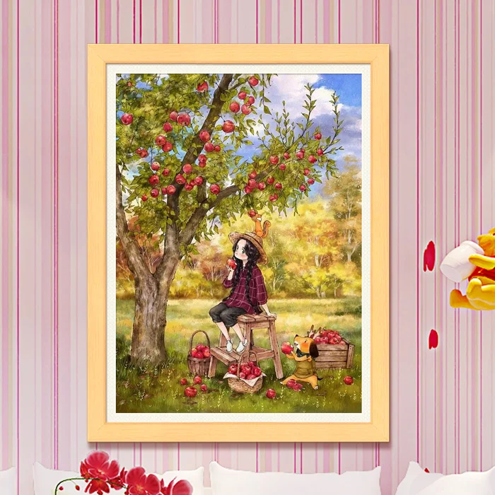 Набор для вышивки крестиком Apple Girl, наборы для вышивки с напечатанным рисунком, 11ct-холст для домашнего декора, картина из комиксов, полная вышивка