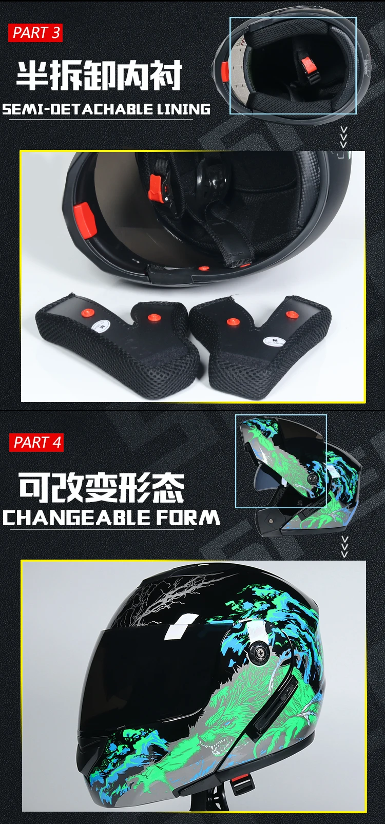 Мотоциклетный шлем, откидной шлем на все лицо для мужчин и женщин, с двойным солнцезащитным козырьком