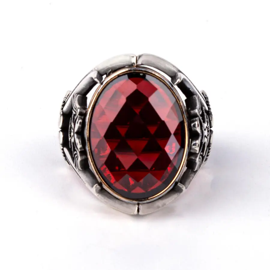 Серебряное мужское кольцо с красным цирконом, мужские украшения руч...