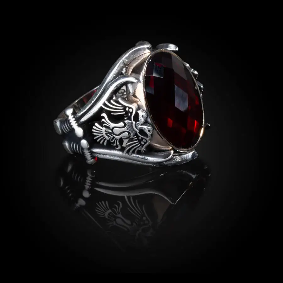 Льва серебряное кольцо с красный камень циркон Для мужчин серебряно...