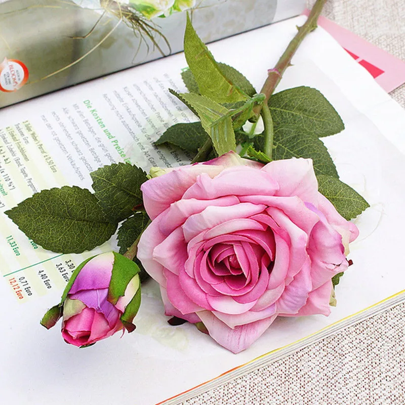 Открытая ветка розы в стиле ретро, искусственные шелковые цветы для дома, свадебное украшение, Осенние большие белые розы, искусственные цветы, декор для комнаты