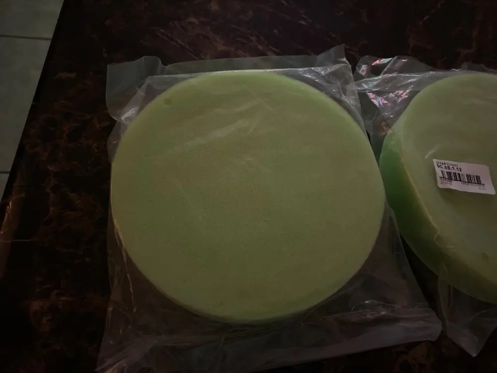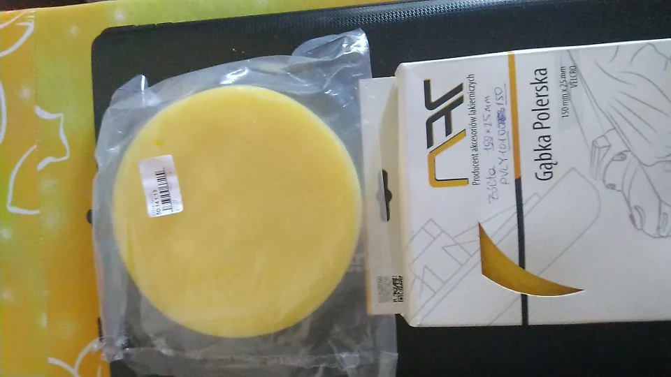 Губка мягче, чем польская жёлтая NAT PVLY 1010150 - структура у китайской не плотная. Подойдет для лёгкой полировки пастой 3M Fine 09375 (неглубокие царапины). На фото вместе - старая губка Nat уже стриженная. Доставка в Самару за 17 дней после заказа - с учётом задержи при отправке в Китае.