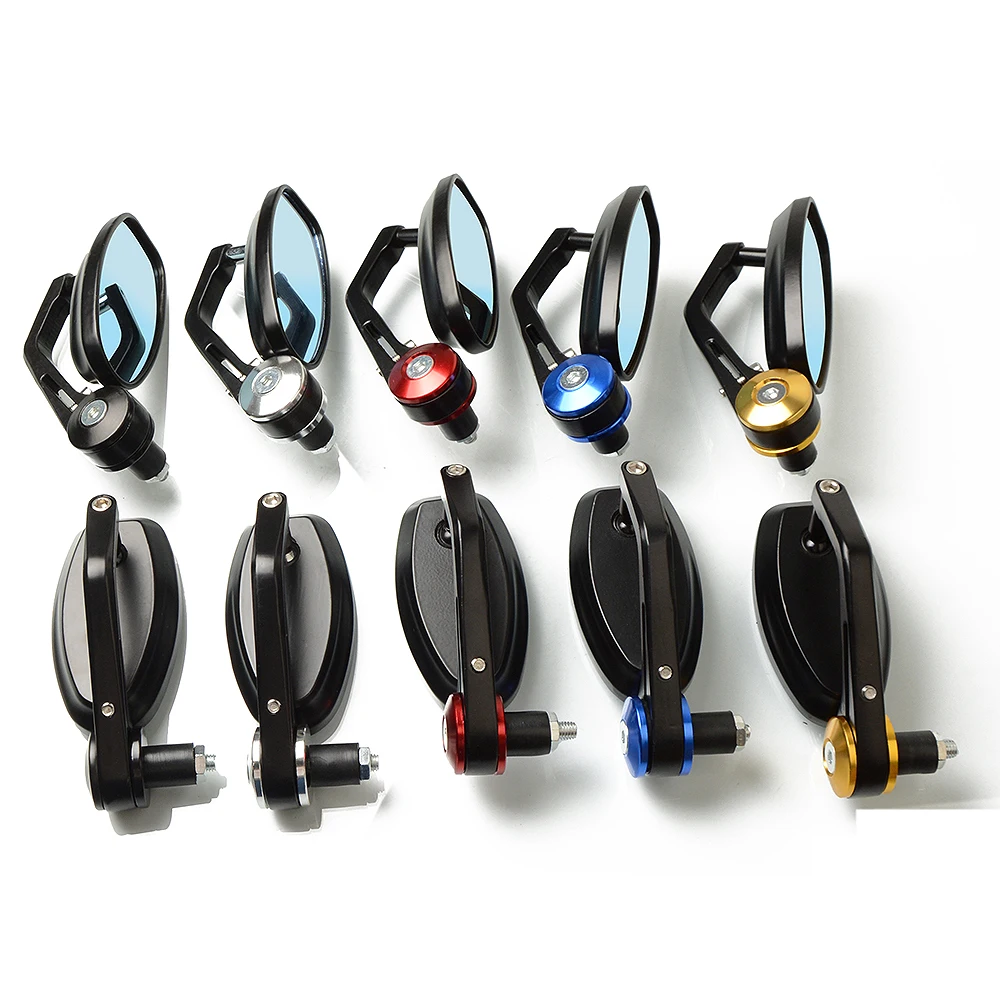 -100% абсолютно новые Aftermarket высококачественные торцевые зеркала-Материал: заготовка из алюминия-Цвет: черный с красным/синим/серебристым/золотым концом-Количество: одна пара-Размер: Размер стекла: 4"-Универсальный подходит для всех мотоциклов 7/8''