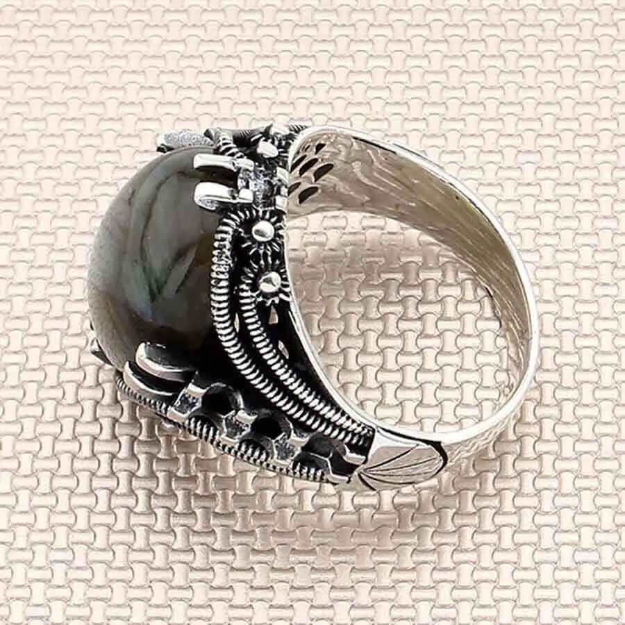 Мужское кольцо из серебра 925 пробы, винтажное, с овальным камнем и...
